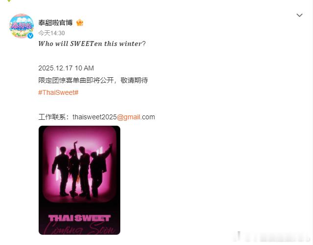 内娱混团来了 内娱首个三男一女限定混团,光看剪影就期待值拉满。已经迫不及待想听他们的惊喜单曲了!