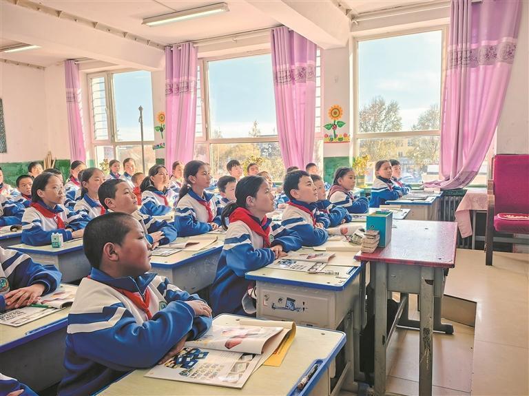 兴海县城关小学的师生们在温暖的教室里上课。
