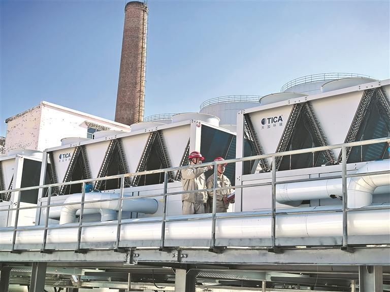温暖背后的支撑,是因地制宜的技术与智慧运营。“青海是全国新能源占比最高的省份,白天新能源电力充裕,项目规模化应用了空气源热泵及‘多能互补+蓄热’的先进技术路线,边供暖、边蓄热。精准利用上午9时至下午5时的谷电时段储热,加热至80℃的热水保温性优异,仅需8小时储热即可满足全天供暖需求,能大幅压缩成本。”大唐青海公司海西事业部都兰清洁供暖项目主任助理巩旭说,为了提高热效率,系统使用软化水、纯水循环,通过板式换热器交换热量,能够去除钙镁离子,不易结垢,比起其他设备,更节能。