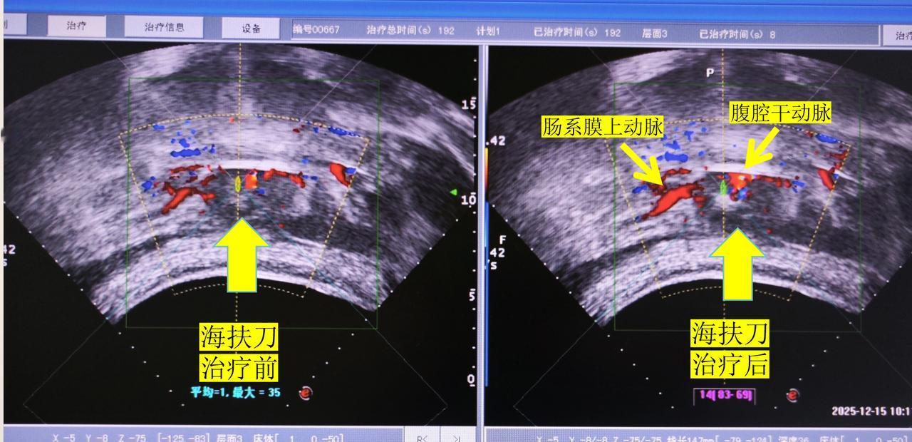 陈谦海扶刀治疗侵犯血管晚期胰腺癌病例11433号 这是我们今天海扶刀治疗的一名晚期胰腺癌患者,病人59岁,病人初期表现为腰痛和腹部疼痛,至当地医院检查,按照胃病口服对症治疗后,疼痛没有得到有效控制,后到梅河口中心医院进一步检查,CT确诊为胰腺癌。 术前CT显示肿瘤已经将腹腔干动脉和肠系膜上动脉完全包饶侵犯,病灶前方是胃腔,胃扩张比较厉害,可能是肿瘤压迫肠道导致有一定的梗阻,右侧紧邻十二指肠,后方就是腹主动脉。 对于这种情况,首先患者没有手术机会,肿瘤已经将血管侵犯无法安全剥离; 化疗是可以选择的方法,但是胰腺癌对化疗一般不明,少数患者也可以化疗后肿瘤缩小从而达到手术的要求; 放疗也是胰腺癌常常选择的方式,不过病灶前方是胃,由于可能导致放射性胃肠炎,所以相对来说不作为首选; 部分医院可能会推荐做临床试验,如果没有更好的治疗方法或者各种治疗方法失败的情况下,也是可以选择的。 我们的治疗方案是海扶刀治疗加上口服化疗药,今天首先是将肿瘤大部分杀灭,降低肿瘤负荷后再靠药物将残留的肿瘤细胞杀灭,是有可能达到长期带瘤生存的效果,并且海扶刀可以同时破坏腹腔神经丛,缓解疼痛,提高生活质量;一般术后第二天患者就可以恢复正常生活。 术中实时超声也可以显示,肿瘤虽然包饶血管,但是我们海扶治疗可以看到肿瘤明显的回声改变,这是肿瘤发生凝固性坏死的超声表现。 所以对于晚期胰腺癌侵犯血管的患者,海扶刀治疗是非常安全有效的,还是非常具有优势。 胰腺癌治疗 海扶刀