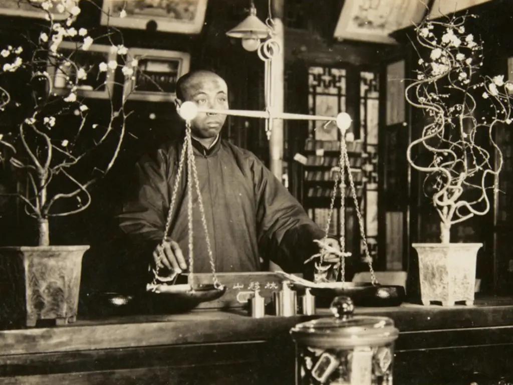 王铎:这是旧中国的什么店铺? 为什么用天枰来称东西?很奇怪。