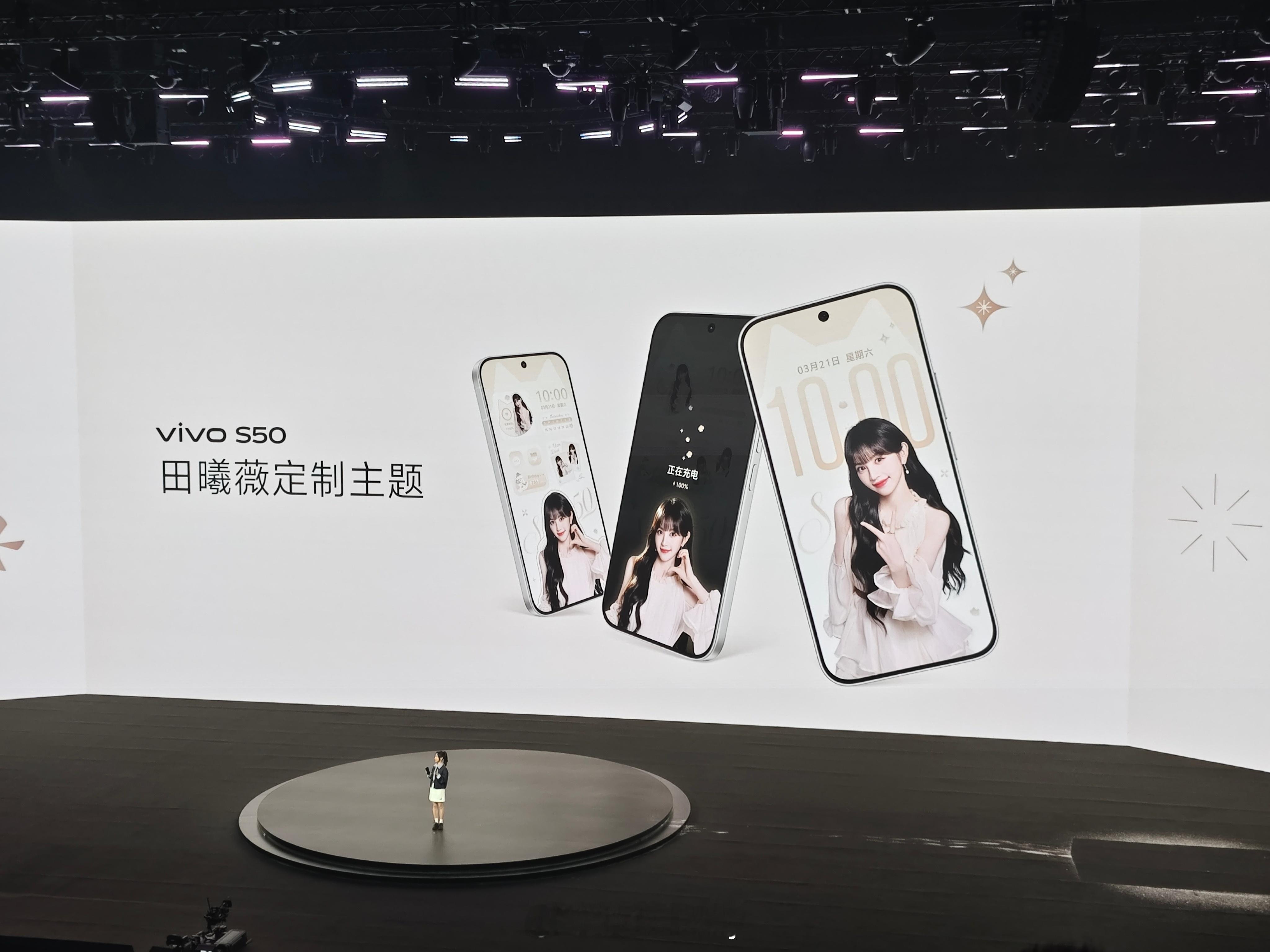 在人人都拼硬朗个性的时代,vivo展现出了温度。vivo S50 四款配色,对自己告白,云映蓝湖的「悠悠蓝」,梦幻诗意的「灵感紫」,沉稳大气的「深空黑」,你最爱哪款。机身7.49mm厚,6.59英寸大屏,轻薄有型,握感舒适。缎面柔光玻璃背板,触感细腻亲肤,抗指纹更耐看,颜值,手感,温度全拿捏。田曦薇同款爱不爱,我喜欢定制主题。vivo s50vivo发布会