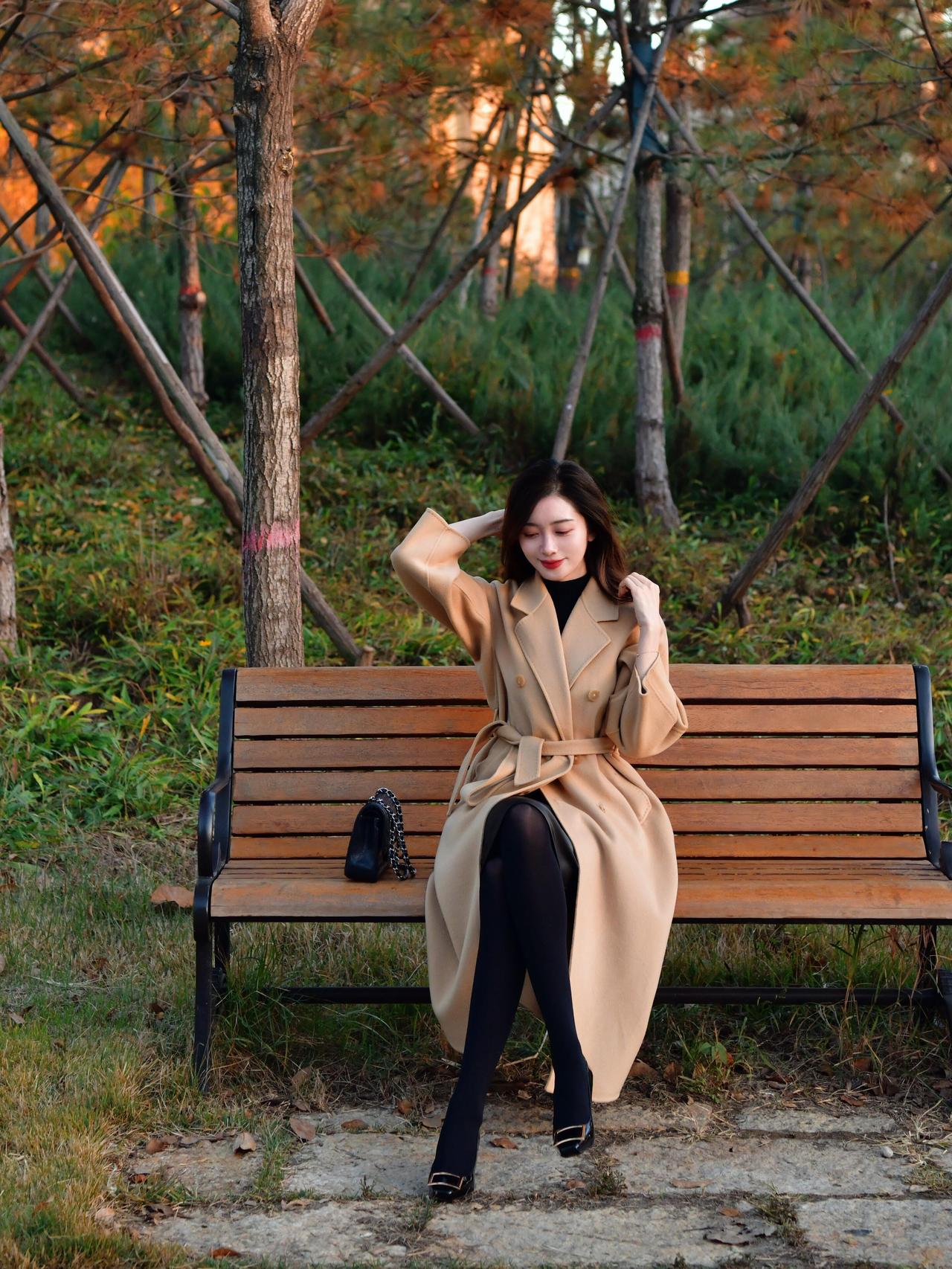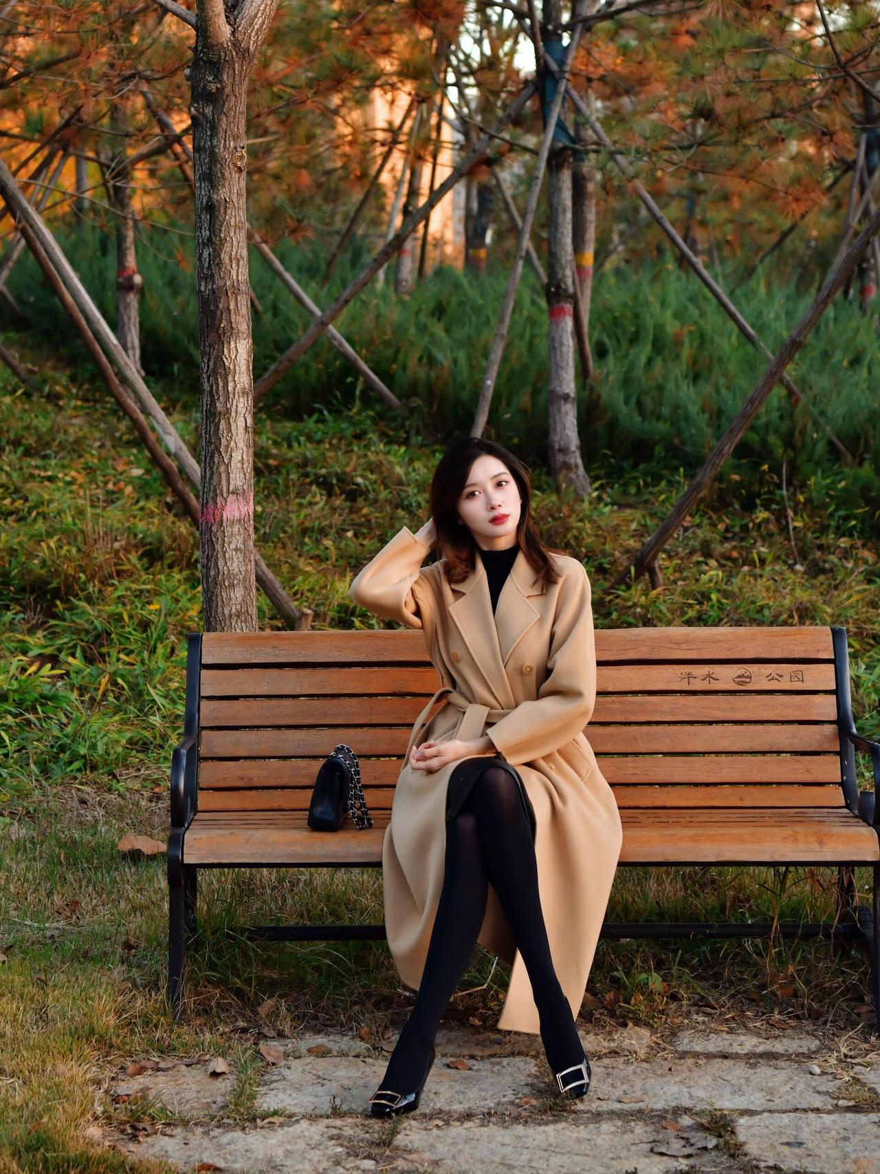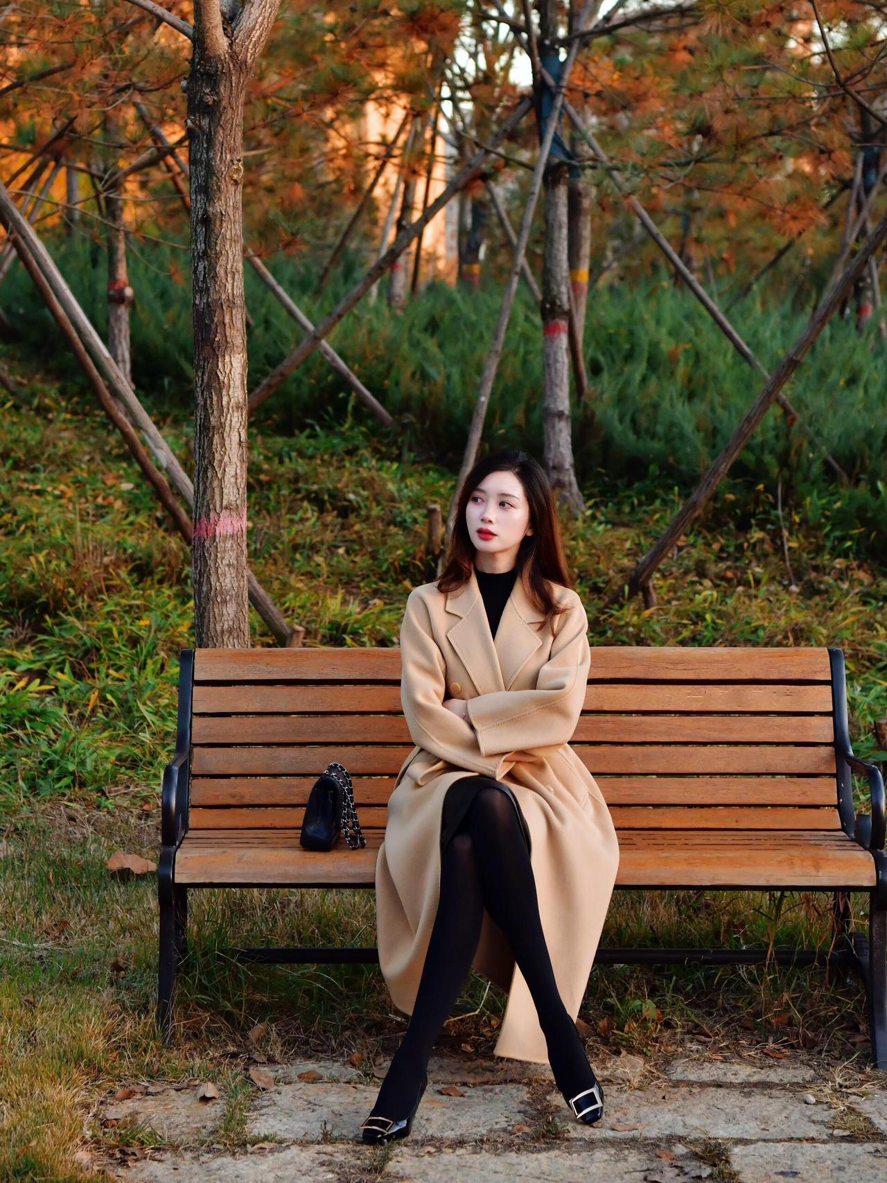 秋日午后,公园长椅上的优雅女子