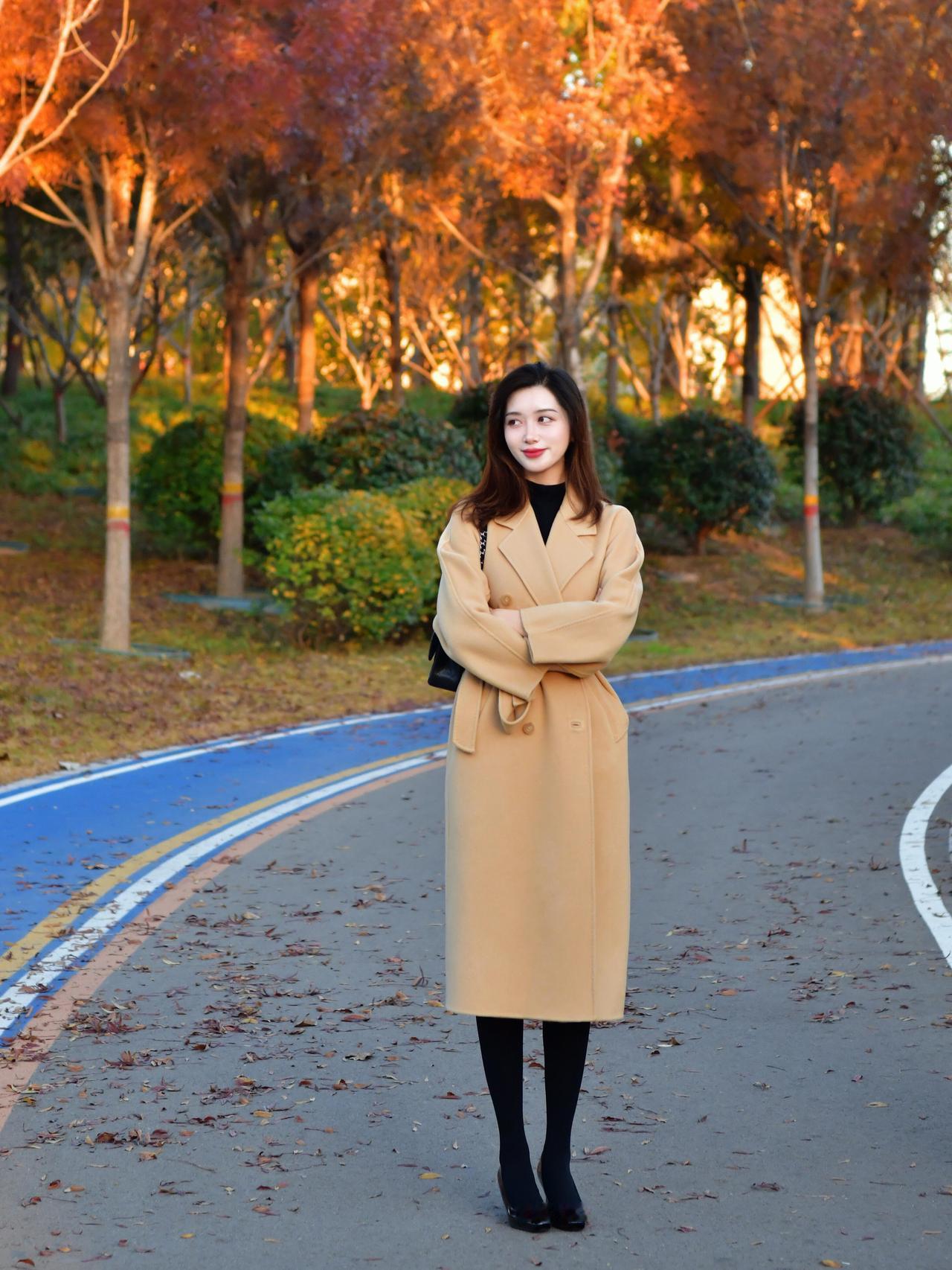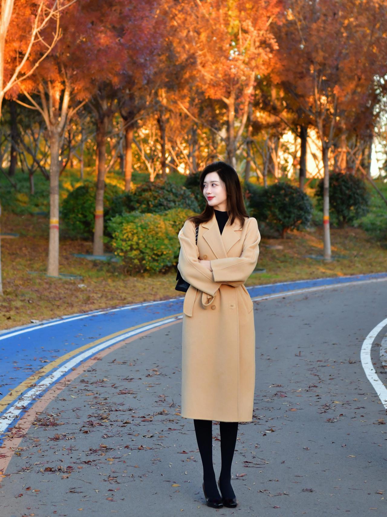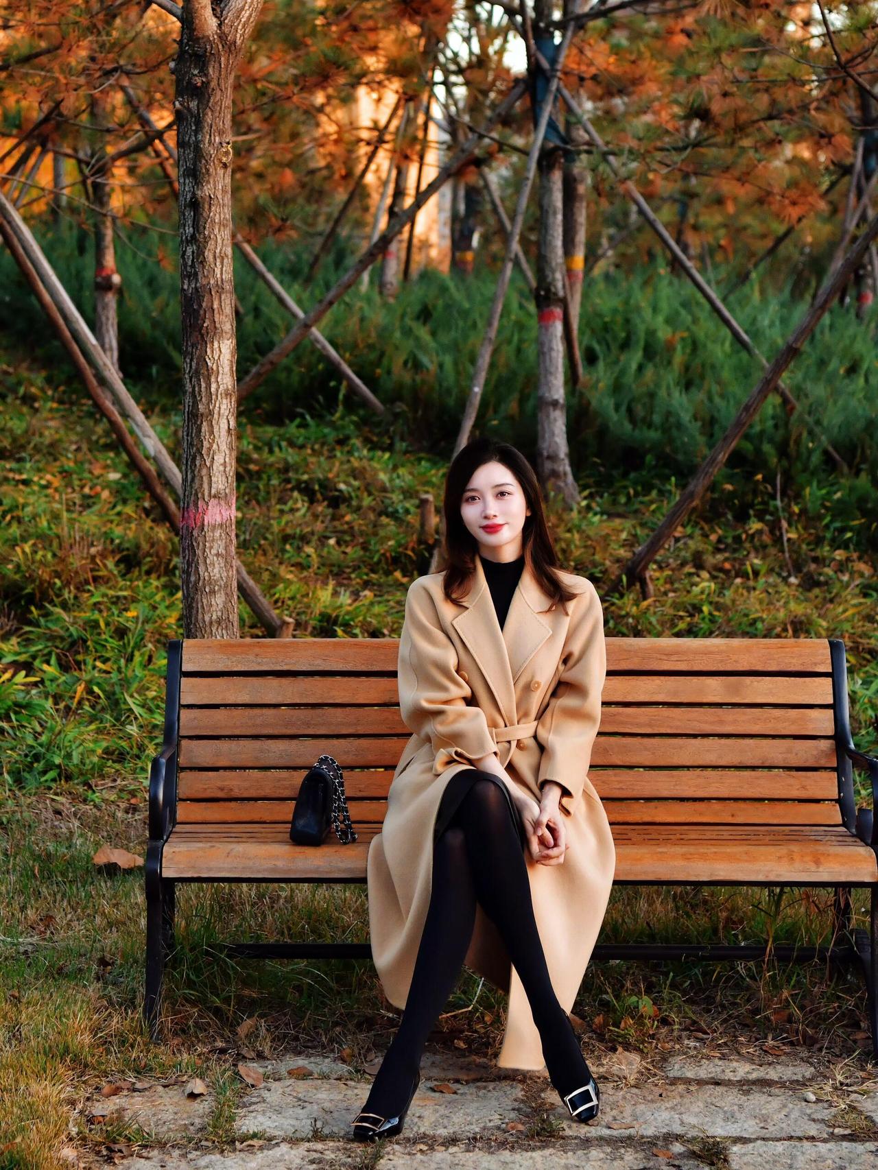 秋日午后,公园长椅上的优雅女子