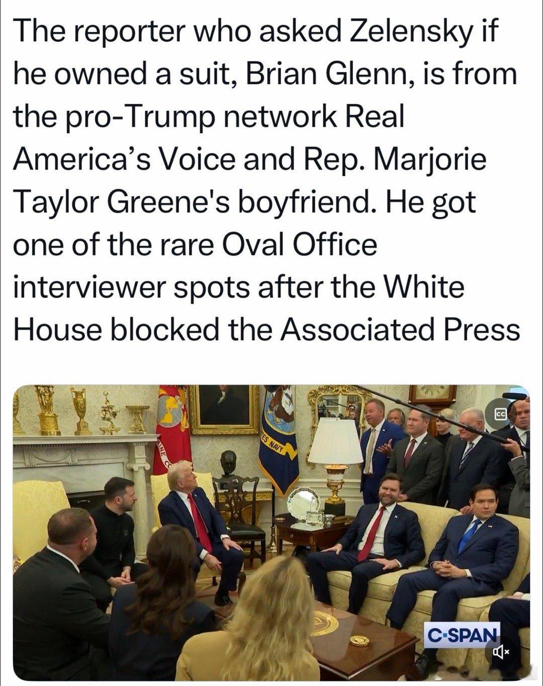众议员Greene订婚了💍未婚夫是右翼媒体驻白宫记者(美联社进椭圆办公室的资格被取消,给了他,二月因指责Zelensky“不穿西装”一举成名)