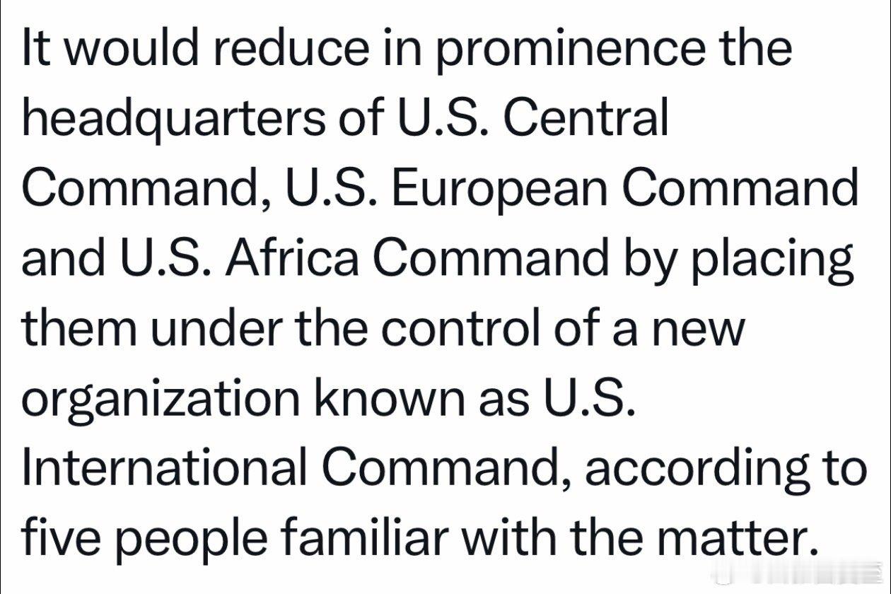 华邮独家报道:美军正进行大规模组织架构重组~将负责中东、欧洲、非洲的司令部降级,归入新成立的“国际司令部”统一管理
