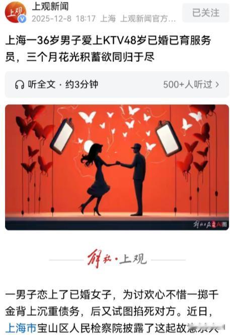 上海,36岁男子和朋友去KTV唱歌时,认识了陪他们喝酒的女服务员。男子和对方相谈甚欢,尽管得知对方比自己大了12岁,已婚且有2个孩子,男子还是频繁的给女子买黄金手链、项链,找女子订包间,花光积蓄后,男子还借了20万。可没想到,女子对他还是爱搭不理,男子心生怨恨,趁女子点歌,从背后掐住女子的脖子,女子被掐晕后,男子放弃施暴,女子安抚好男子,从包间逃出,向同事求助,才躲过一劫,可男子却悲剧了。 黎某没谈过恋爱,家境普通,父母早年在外地打工,攒不下什么积蓄。他自己学历不高,在一家小公司做着不咸不淡的工作,收入勉强糊口。 长相普通甚至有些自卑的他,从学生时代起就很少被异性注意,久而久之,他对感情既渴望又胆怯。 那天晚上,是朋友生日,几个人相约去KTV唱歌。包间里灯光昏暗,酒水一杯接一杯,黎某难得放松,喝得微醺。 就在这时,陪酒的女服务员文某走进包间。她穿着职业装,妆容浓却掩不住眼角的疲惫,说话温和,给人一种历经世事的成熟感。 文某坐下来陪他们喝酒、点歌,黎某注意到她对自己格外耐心,两人聊起天来,竟有几分投缘。 酒意上头,黎某渐渐放下防备。文某告诉他,自己比他大12岁,已经结婚,还有两个孩子。 出来工作,是因为家里缺钱,丈夫收入不稳定,她也没什么技能,只能在这种地方陪酒赚钱。说这些话时,她语气平静,却带着隐约的无奈。 黎某听得心里一阵发酸,从小到大,很少有人对他这样倾诉生活的艰难。他觉得自己被需要、被信任,一种从未有过的情绪在胸口翻涌。 朋友们私下提醒他:“这种地方认识的女人,别太认真,大家都是为了钱。” 可黎某没听进去。在他看来,文某的辛苦是真实的,她的眼神里有疲惫,也有温柔。他开始频繁找借口去那家KTV,只为了再见她一面。 文某并不拒绝,依旧陪他说话、喝酒,偶尔叹气,说孩子的学费、家里的开销。黎某一次次被触动,觉得自己如果能帮她一点,就能拉近彼此的距离。 不久后,他开始送礼。第一条黄金手链,是他攒了好久的钱买的;接着是项链、耳饰。他几乎每次去都订包间,只点文某作陪。 钱像流水一样花出去,他却甘之如饴,仿佛这些付出能换来一份真正的感情。 积蓄花光后,他开始刷信用卡、向朋友借钱,甚至贷款了20万。他安慰自己,只要两个人能在一起,将来总能慢慢还清。 现实并没有按照他幻想的方向发展。当黎某再也拿不出钱来,去KTV的次数也减少时,文某的态度开始变得冷淡。回复消息越来越慢,见面时也显得敷衍。 最终,她明确表示,希望结束这种关系。她说得很平静,称自己只是把黎某当普通朋友,从未承诺过什么。 黎某无法接受。他觉得自己付出了全部,却被无情抛弃。自尊、失落和愤怒交织在一起,让他逐渐失去理智。 他开始频繁纠缠文某,发长篇消息,质问她的感情,要求继续在一起。文某一再回避,明确拒绝。那天晚上,黎某再次来到KTV,情绪已经濒临失控。 包间里,文某正在点歌。黎某站在她身后,脑子里一片空白,仿佛所有的委屈和不甘都在瞬间爆发。他突然伸出手,从背后掐住她的脖子。 文某来不及反应,呼吸被瞬间夺走,挣扎了几下便失去了意识。那一刻,黎某似乎也被吓醒了,手松了下来。他没有继续施暴,只是呆立在原地,脸色苍白。 文某醒来后强忍恐惧,低声安抚他的情绪,说愿意把黎某送的金银首饰全部归还,只求以后不再见面。趁黎某情绪稍缓,她迅速逃出包间,向同事求助,事情才没有酿成更严重的后果。 为了彻底摆脱纠缠,文某再次表示愿意退还所有财物。可黎某依旧不同意,他只反复要求复合,仿佛这是他唯一的救命稻草。 见对方态度坚决,他竟主动提出报警,似乎想借此逼迫事情“有个说法”。 民警赶到现场时,黎某情绪激动,突然从身上掏出一把刀,声称自己带刀来就是要和文某同归于尽。这一举动震惊了在场所有人,警方迅速将其控制。 事后调查认定,黎某的行为已经构成严重暴力犯罪。最终,他因涉嫌故意杀人罪(中止)被依法提起公诉。