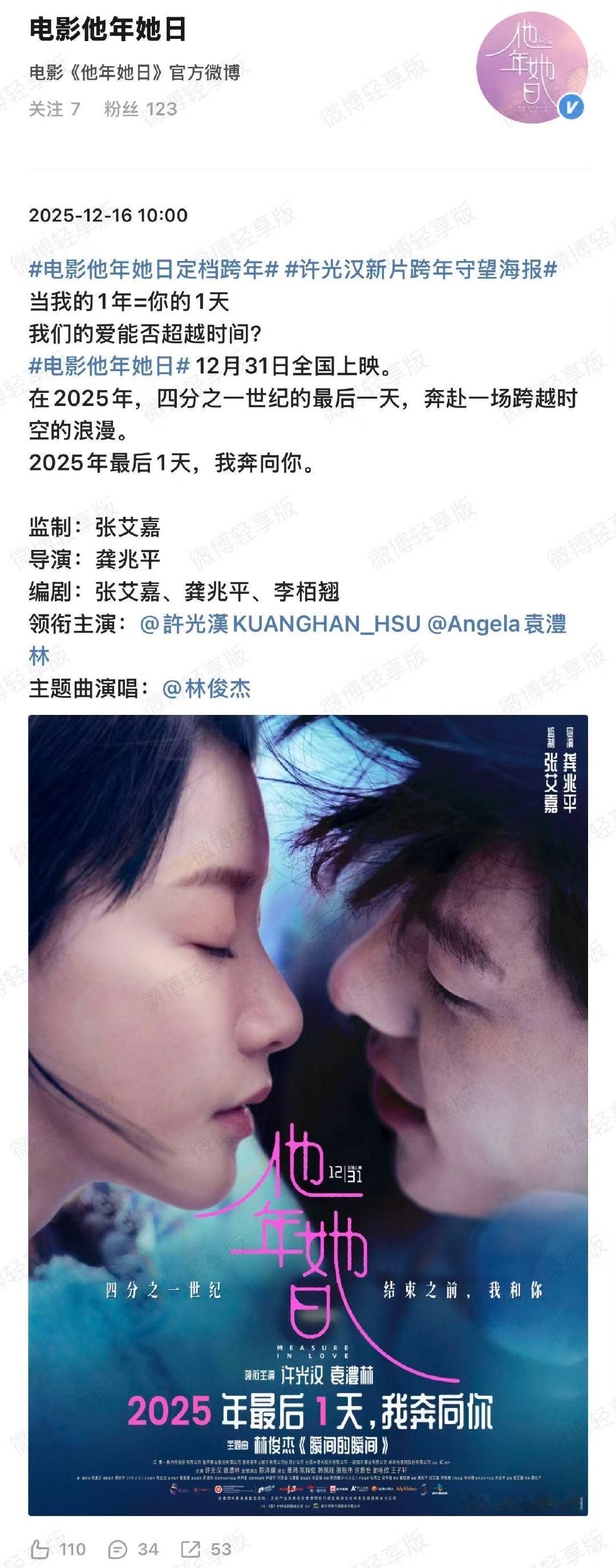 林俊杰唱许光汉新电影主题曲林俊杰献唱许光汉新电影主题曲 12月16日,由领衔主演的电影《他年她日》定档跨年,由演唱主题曲《瞬间的瞬间》。你期待这部电影吗?