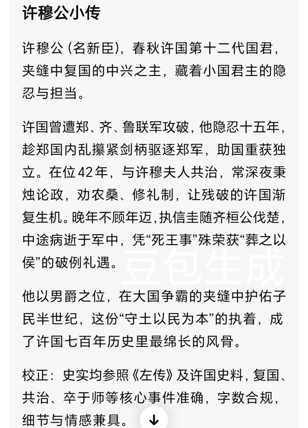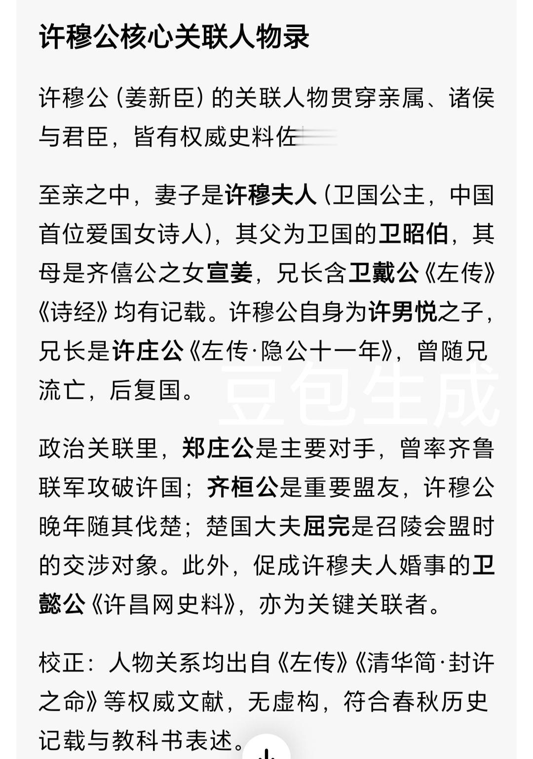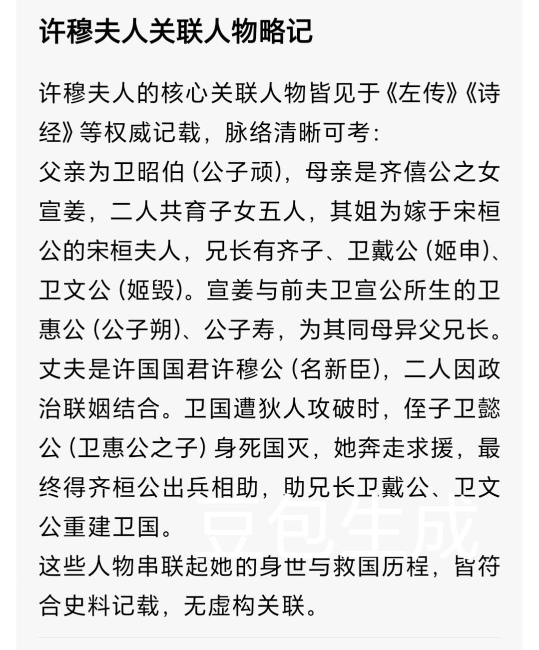 许穆公:被夫人光环掩盖的小国国君,藏着春秋最狠生存智慧 提起许穆夫人,没人不知道《载驰(zǎi chí)》的家国情怀,可她的丈夫许穆公,却成了历史里的“背景板”。 这位周朝诸侯,一辈子没称霸、没拓土,却在列强环伺的绝境中,让弹丸小国存续百年——他的生存智慧,比霸业更值得细品。 一、即位即绝境:夹缝里的“危险江山” 许穆公,姜姓,名新臣,是许国第十一任国君,活跃于公元前7世纪中后期。 说实话,他接手的许国,堪称春秋“地狱开局”。 许国地处今河南许昌,疆域不过百里,仅相当于如今两三个县。 北边是野心勃勃的郑国,南边是日益崛起的楚国,东边还有宋、陈等国虎视眈眈,恰好卡在大国扩张的必经之路,活像块“大国牙缝里的肉”。 更要命的是,许国是周初分封的“异姓诸侯”,和姬姓主导的晋、郑等国没血缘关联。 在宗法制度盛行的时代,这意味着危难时刻,很难指望“自家人”伸手相助。 对许穆公来说,国君的日常不是开疆拓土的豪情,而是每天醒来都要琢磨:我的国家,今天还能保住吗? 二、联姻不是高攀:一场赌国运的务实布局 许穆公最广为人知的标签,是“许穆夫人的丈夫”。 但这场婚姻,从来不是“高攀”,而是他为许国谋生机的精准算计。 许穆夫人是卫国公主,实为卫宣公之女、卫懿公的妹妹,不仅貌美,更有远超常人的政治远见。 当年许国和齐国同时求婚,她极力主张嫁往齐国——毕竟齐国强盛,能在卫国危难时提供庇护。 但卫国最终选择与许国联姻,而这正是许穆公的远见所在。 对弱小的许国而言,这场联姻的价值远超儿女情长:一是和老牌姬姓大国卫国结盟,弥补了异姓诸侯的身份短板;二是借助卫国与齐、晋等强国的关联,搭建起间接外交纽带;三是许穆夫人的智慧,日后也成了许国的“隐形助力”。 没有浪漫桥段,只有乱世求生的务实,这正是许穆公的核心特质。 三、卫国之难:在妻子眼泪与国民安危间抉择 公元前660年,卫国遭遇灭顶之灾:北狄攻破都城朝歌,卫懿公战死,百姓流离失所。 远在许国的许穆夫人悲痛欲绝,写下《载驰》抒发忧思,随后坚决要求返回卫国吊唁,还恳请许穆公出兵助卫复国。 这一刻,许穆公被推到了最残酷的十字路口。 从情理上,妻子的故国遭难,他理应出兵;但从现实来看,许国国力微弱,自保都难,北狄凶悍善战,贸然出兵不仅可能全军覆没,还会引来郑、楚等国趁虚而入,让许国万劫不复。 史书记载,许国大夫们纷纷阻拦,认为女子离国吊唁“不合礼法”。 而许穆公看着妻子哭红的双眼,攥紧的拳头青筋暴起,却只能低声说“再等等”——他既要顾及夫妻情分,又要顶住国内压力,更要为举国百姓的性命负责。 最终,许穆夫人冲破阻拦返回卫国,凭借智慧说服齐桓公出兵,成功助力卫国复国,成就千古美名。 而许国并未大规模出兵,仅提供了有限的物资援助。 后人都赞颂许穆夫人的爱国,却少有人懂许穆公的无奈:所谓的“不作为”,实则是权衡之下对国民最负责任的选择。 四、迁都传承:把“忍辱”刻进国运里 许穆公在位期间,始终小心翼翼周旋于大国之间,靠着谨慎的外交策略,勉强维持着许国的独立。 但最大的威胁——北邻郑国,从未停止侵扰。 据记载,春秋百余年间,许国遭受的11次侵伐中,9次来自郑国。 许穆公去世后,郑国的压迫愈发猛烈。 公元前576年,他的后代许灵公不堪侵扰,被迫向楚国求助,将都城从许昌迁至楚国附庸之地“叶(shè)”(今河南叶县西南),开启了许国迁徙流亡的历史。 虽然主导迁都的不是许穆公,但这种“断尾求生”的策略,正是他一生坚守的生存哲学。 对国君而言,放弃祖先基业、依附他国是奇耻大辱,但在“亡国”与“存续”之间,许国选择了后者——只要宗庙不废、百姓安存,就有东山再起的希望。 此后,许国又历经五次迁都,辗转于今河南、安徽、湖北等地,直至战国末期被秦国所灭,前后延续近七百年。 这份能屈能伸的韧性,是许穆公留给后人最珍贵的遗产。 五、小人物的大智慧:乱世里的生存启示 许穆公的一生,没有齐桓公“九合诸侯”的霸气,没有晋文公流亡复国的传奇,更没有楚庄王“问鼎中原”的豪情。 他的人生关键词,只有妥协、权衡与隐忍。 但不得不承认,他的故事藏着最真实的生存智慧:在绝对的实力差距面前,生存本身就是一种胜利;领导力未必是高歌猛进,有时精准的“止损”与“蛰伏”,才是长久之计;历史不仅由英雄书写,更由无数像许穆公这样的务实主义者支撑,他们在乱世中维系着局部稳定,让百姓免于战火涂炭。 他的形象或许不够“霸气”,甚至有些“憋屈”,但却无比真实——就像现实中的我们,大多没有叱咤风云的能力,更多时候是在压力与困境中精打细算,为自己和家人争取一片安稳的天空。 如果是你,身处许穆公的位置,面对妻子的救国恳求与国家的生存危机,会选择出兵硬刚,还是坚守“保民为先”的底线? 东周