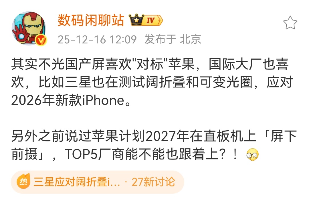 继三折叠手机后,三星还有阔折叠以及可变光圈的测试。怎么感觉不像是对标苹果,更像是对标华为呢。