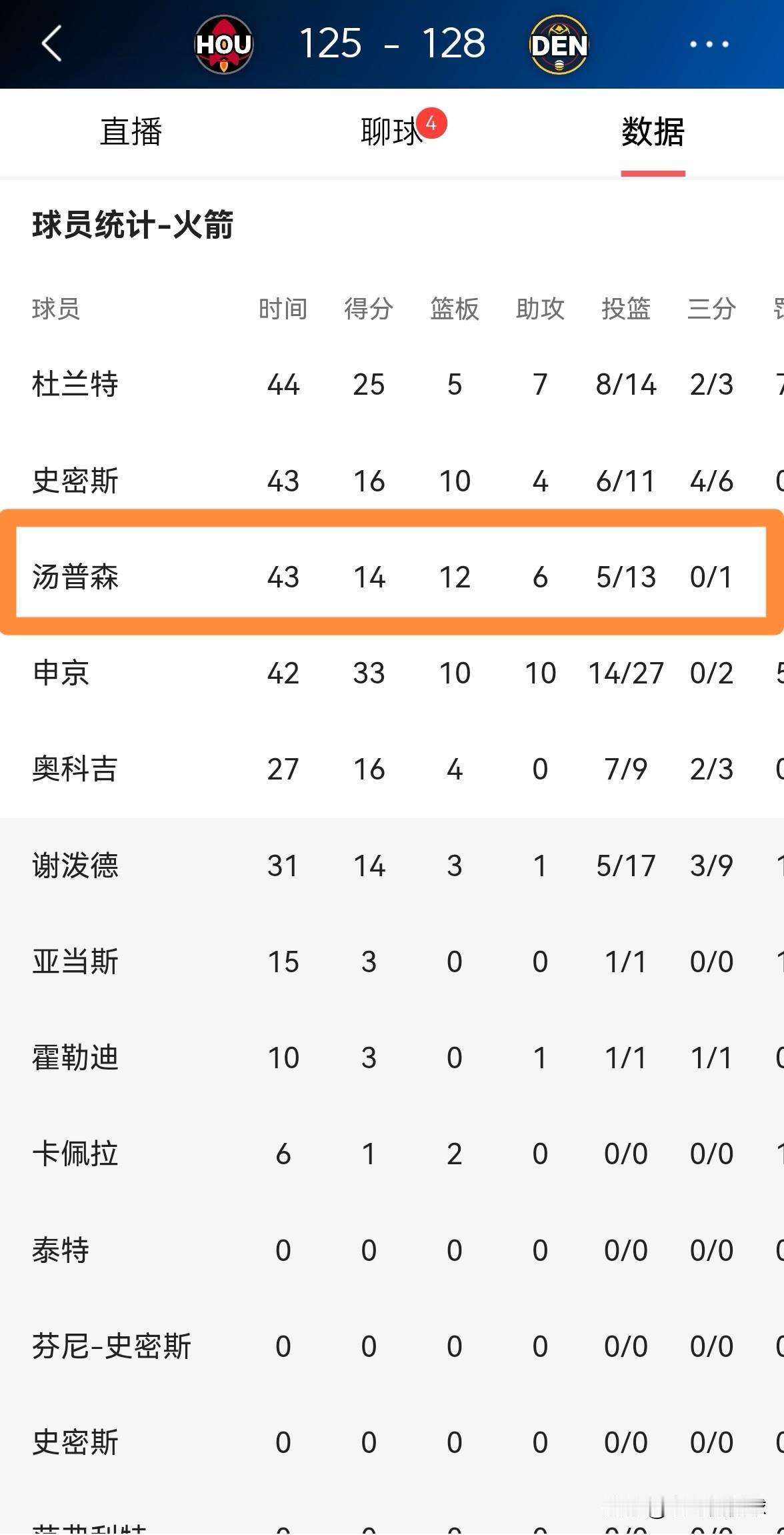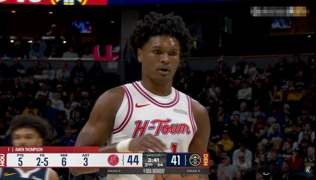 火箭新星阿门-汤普森真是一名伪控卫!在今天火箭客场以125:128不敌掘金的比赛中,阿门首发出战43分钟,投篮13中5,其中罚球5中4得到14分12篮板6助攻,他的场上正负值为-3。虽然阿门名义上是球队的首发控卫,但是阿门更多的是充当运球过半场的角色,当阿门运球到前场后就将球交给杜兰特或者申京进行组织,而阿门接下来要做的就是一次次的冲击前场篮板。