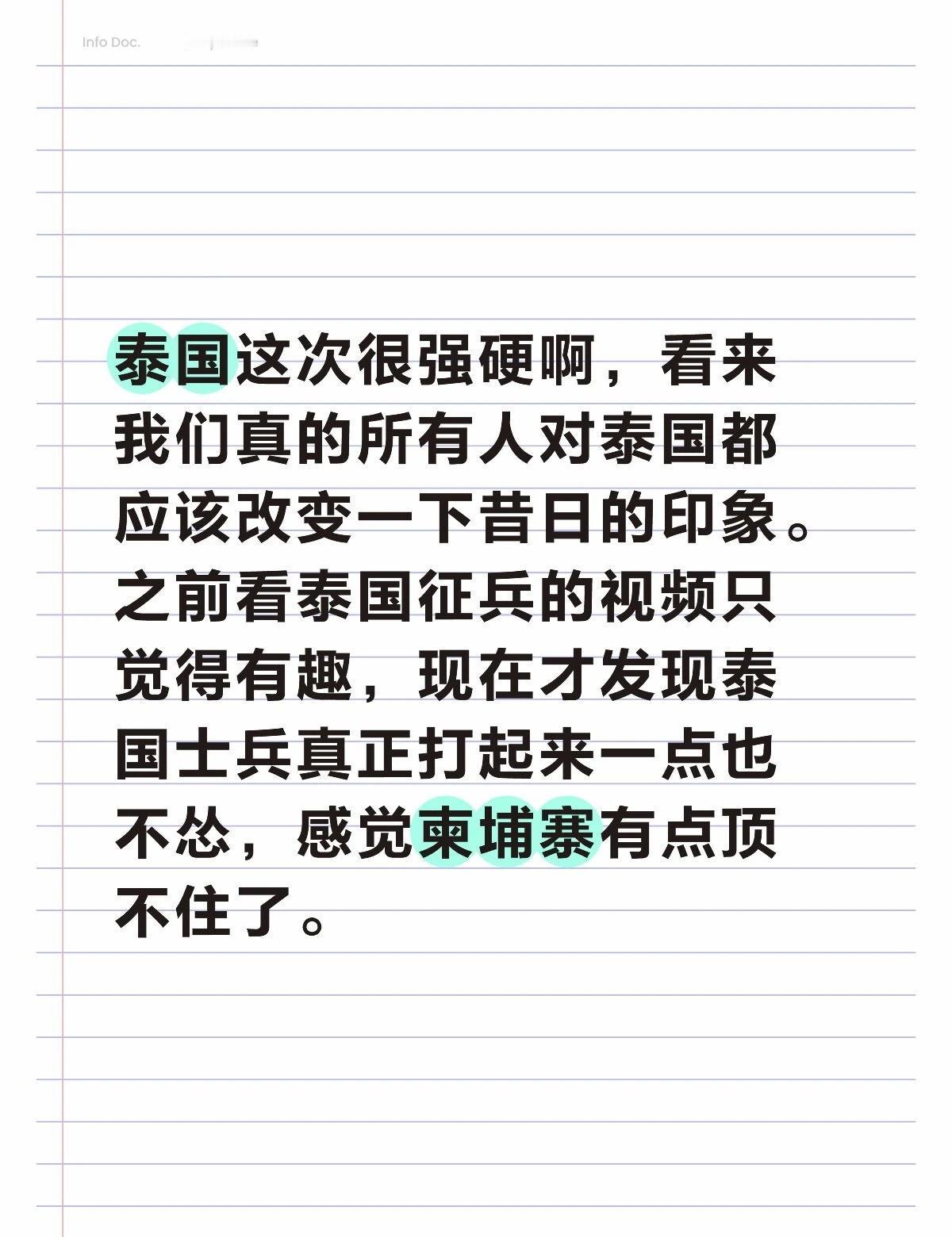 泰国这次很强硬啊,看来我们真的所有人对泰国都应该改变一下昔日的印象。之前看泰国征 泰国这次很强硬啊,看来我们真的所有人对泰国都应该改变一下昔日的印象。之前看泰国征兵的视频只觉得有趣,现在才发现泰国士兵真正打起来一点也不怂,感觉柬埔寨有点顶不住了。