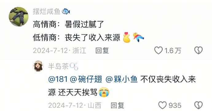 高情商:暑假过腻了 低情商:丧失了收入来源