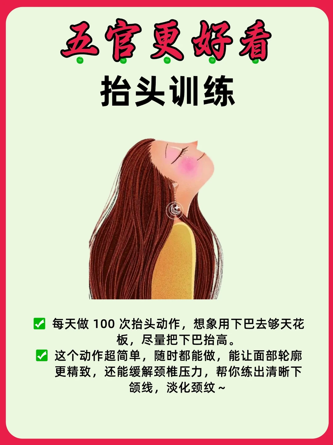 被问爆的「五官塑形干货」来啦! 不用yiyi美、不花大钱,每天花几分钟做这些动作,悄悄变美太香了👇 1️⃣ 「抬头杀」练出下颌线 ✔️ 每天 100 次抬头!想象下巴去够天花板,尽量抬高 ✔️ 随时能做!玩手机、追剧时顺手套路,还能缓解颈椎痛 ✔️ 效果:下颌线变清晰,颈纹淡了,侧脸直接封神 2️⃣ 「转眼珠」让眼睛变有神 ✔️ 每天 5 分钟!上下左右 + 斜向各看 10 次,顺 / 逆时针转 10 圈,最后远近聚焦 10 次 ✔️ 一周见效!眼神从 “呆滞” 变 “会说话”,素颜也自带高光✨ 3️⃣ 「鼓腮帮子」淡化法令纹 ✔️ 每天 5 分钟!闭紧嘴巴鼓腮,让面部皮肤撑开 ✔️ 悄悄变嫩!促进脸颊循环,法令纹浅了,苹果肌都嘭起来 4️⃣ 「转舌头」强化面部肌肉 ✔️ 每天早上转!顺 / 逆时针各 20 圈,舌头越转越灵活 ✔️ 隐藏福利:发音更清晰好听,连法令纹都跟着少了 5️⃣ 「捏鼻梁」重塑立体鼻 ✔️ 睡前按!用中指 + 食指轻压鼻梁 + 山根,力度别太重 ✔️ 坚持就赢!鼻部线条越来越立体,侧脸直接开挂👃 6️⃣ 「捏耳朵」红润气色 get ✔️ 洗脸后做!捏耳垂 1 - 2 分钟 + 提拉耳廓 10 - 15 次 ✔️ 玄学变美:耳朵连全身器官,按摩后脸色超红润,素颜都发光 💡 划重点:这些动作全是「碎片时间杀手」! 追剧 / 蹲坑 / 等车时随手做,坚持一周就能看到变化~ 快 “变美搭子”,一起悄悄逆袭成骨相美女✨