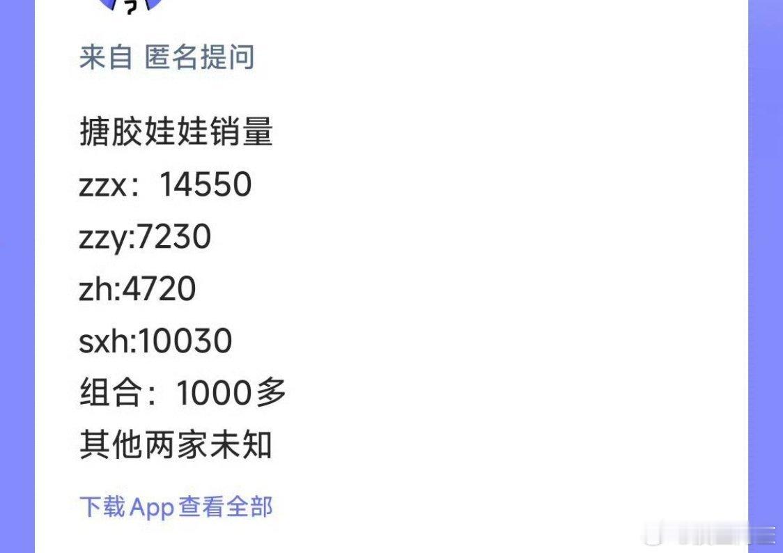 印厂好像直接把top登陆少年团的周边搪胶娃娃直接把销量印盒子外面了,目前已知销量的朱志鑫销量14550,苏新皓10030,张泽禹7230,左航4720,组合1610。