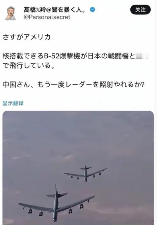 军B52轰炸机出现,日本立刻挺起了胸膛,说:中国有本事再照一次! 在中俄联合巡航的第二天,美军出动B52给日本撑腰。不少日本网民在看到美军B-52出现的消息后情绪高涨,甚至有人留言:“中国有本事再用火控雷达照一次!”——这明显是指此前日本F15被歼15雷达照射事件。 12月9日中俄按年度计划开展的联合战略巡航,本就是国防部早有声明的例行项目,不针对任何第三方,可偏偏戳中了日本的敏感神经,等到第二天美军B52轰炸机一出现,日本就跟突然找到了主心骨似的,腰杆一下就硬了。 网民甚至叫嚣着让中国再用火控雷达照一次,这股子“有人撑腰就忘形”的劲头,着实把“抱大腿”的精髓演绎得淋漓尽致。 先不说这戏码有多刻意,咱们把事情的来龙去脉捋清楚,就知道谁在虚张声势,谁又有真底气。 首先得明确,中俄这次巡航的阵容可不是摆样子的,中方出动轰-6K、歼-16、苏-30和空警-500A预警机,俄方派出图-95战略轰炸机及护航战机,这套组合拳打出来,远程突防、电子压制和态势感知能力样样齐全,说白了就是专业级别的战略巡航配置。 航线贴近所谓“第一岛链”、距离日本本土较近也完全合理,毕竟公海空域不是日本的后花园,国际法可没规定谁离得近就归谁管,更何况中俄每年都有这类联合行动,早就是公开透明的常规操作,日本要是真淡定,也不至于这么快就盼着美军来站台。 日本网民念念不忘的“火控雷达照射”事件,更像是一场自导自演的“碰瓷闹剧”被戳穿后的不甘心。 事情发生在12月6日,辽宁舰航母编队在西太平洋公海搞舰载机训练,事先不仅按国际惯例公布了训练海空域,还两次专门给附近的日本“照月”号驱逐舰通报,从训练开始时间到持续时长说得明明白白,日方两次都确认收到了。结果呢? 日本转头就派了2架F-15战机径直闯进校园区,最近时离中方战机不足50公里,这个距离已经进了中远程空空导弹的不可逃逸区,换成任何国家的军队,都得把这当成危险抵近。 歼-15开启火控雷达进行警告,完全是必要的防御性反应,而且从日方透露的52公里和148公里这两个照射距离来看,明显是搜索模式下的常规扫描,根本不是所谓的“锁定攻击”,说白了就是日本蓄意滋扰在先,被警告后反而倒打一耙。 再看美军派来的B52轰炸机,这款上世纪50年代就服役的老机型,如今早就是“爷爷辈”的装备了,虽然载弹量不小,但机动性和隐身能力放在现代防空体系面前,根本算不上什么“大杀器”。 更有意思的是,驻日美军本就是《日美安全保障条约》框架下的产物,这个1951年就签订的条约,本质上就是美国把日本当成远东军事基地的“不平等协议”,哪怕后来修订多次,也改变不了日本依附美国的本质。 2024年9月日本自民党总裁石破茂还喊着要修改条约,想搞“对等同盟”,可真到了需要撑场面的时候,还是得靠美军的老机型来壮胆,这“平等”的底气在哪儿呢? 况且B52来一趟也就是飞一圈摆摆样子,真要是发生冲突,美军会不会真为日本出头,恐怕日本自己心里也没底,毕竟历史上美军从来都是把自身利益放在第一位,当年的条约里可没写“无条件为日本出头”。 更讽刺的是,日本嘴上喊得凶,却刻意忘了自己当初被照射时的窘迫。当时歼-15两次照射,第一次持续几分钟,第二次最长约30分钟,期间F-15根本没法摆脱,这背后暴露的其实是日美战机的技术代差。 歼-15作为舰载机,在远海训练中能轻松压制F-15,而美军的B52来了也改变不了这个事实。 日本之所以这么激动,说白了就是想借美军的存在感,给自己推动军备扩张找借口,毕竟这些年日本一直想把防卫预算提上去,还在西南诸岛部署导弹,总得找个“威胁”当由头。 这次中俄巡航刚好成了借口,美军一来,正好顺理成章地渲染“安全焦虑”,这套“借势造势”的套路,早就不是第一次用了。 说到底,日本的“挺胸抬头”不过是仗着有人撑腰的短暂亢奋,美军的B52也只是临时客串的“道具”。 中俄联合巡航的常态化,本身就说明地区安全不是靠某一个国家的霸权撑腰,而是靠实力和规则说话。 日本要是真有底气,就不会把希望寄托在别人身上,更不会用“碰瓷挑衅”的方式刷存在感,毕竟在绝对的实力差距面前,再响亮的叫嚣,也只是自欺欺人罢了。