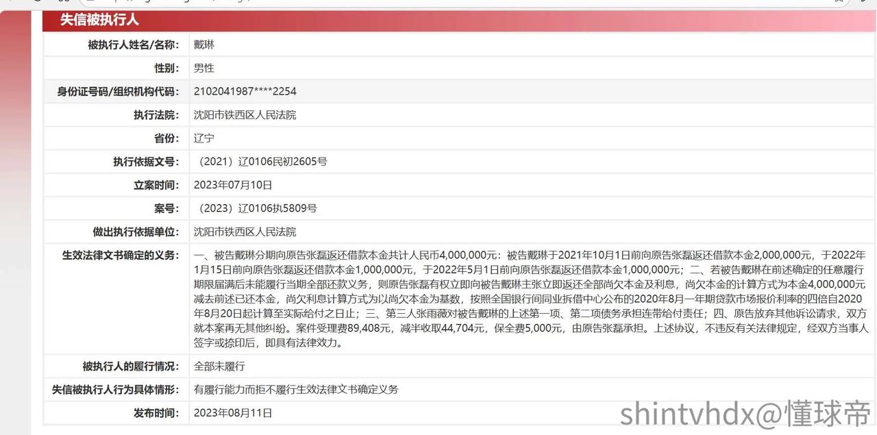 前山东泰山球员戴琳欠山东球迷钱的事,最近闹的沸沸扬扬,目前该山东球迷已经离世。 根据媒体报道,戴琳在被欠款球迷去世当天还款5000元。另外足球媒体人李平康晒出3张微信聊天截图并表示:“据戴琳曾经身边朋友介绍,戴琳对他的母亲也是经常进行辱骂,戴琳母亲打工干体力活帮儿子还债。” 一个在中超最稳定俱乐部踢主力的,一个赶上金元足球的准国脚,这些年几千万应该挣了,怎么沦落到这个结局,真让人无语,让人唏嘘不已。而且从网友截取法院判决来看。可能泰山队很多球员都被戴琳借过钱,加起来也不是一笔小数目,戴琳现在退役了,没有什么正经工作,恐怕这些钱很难还了!