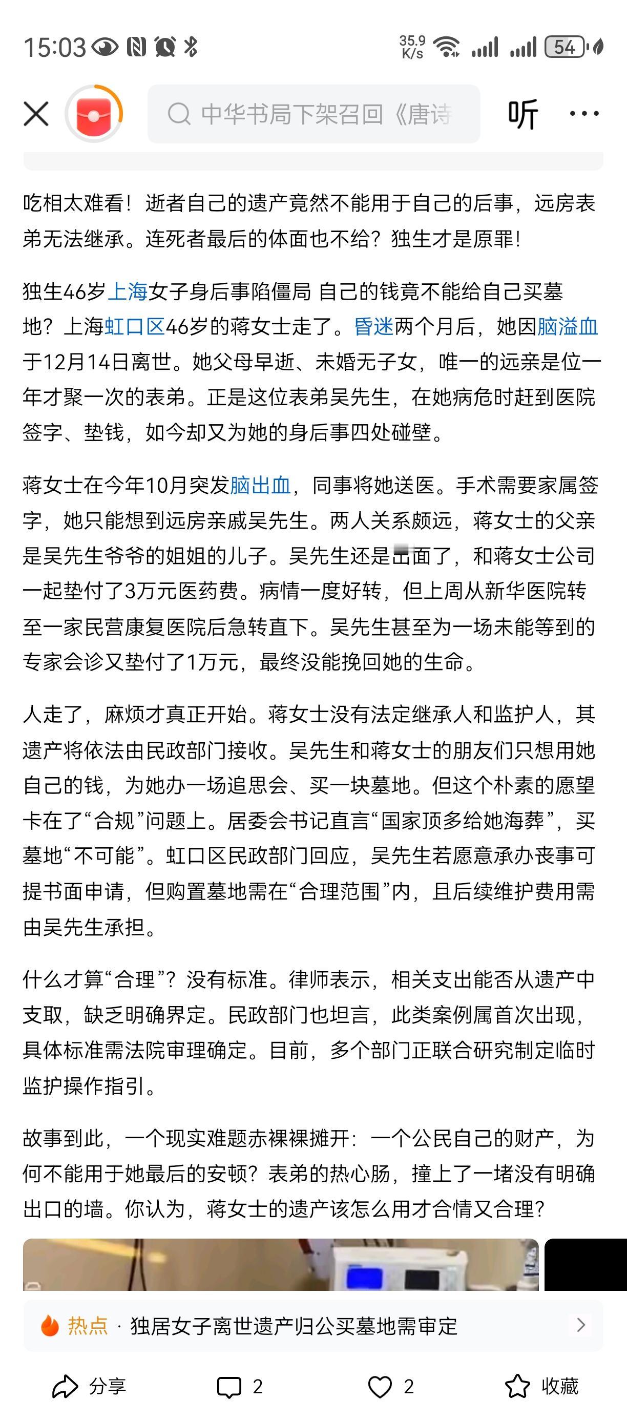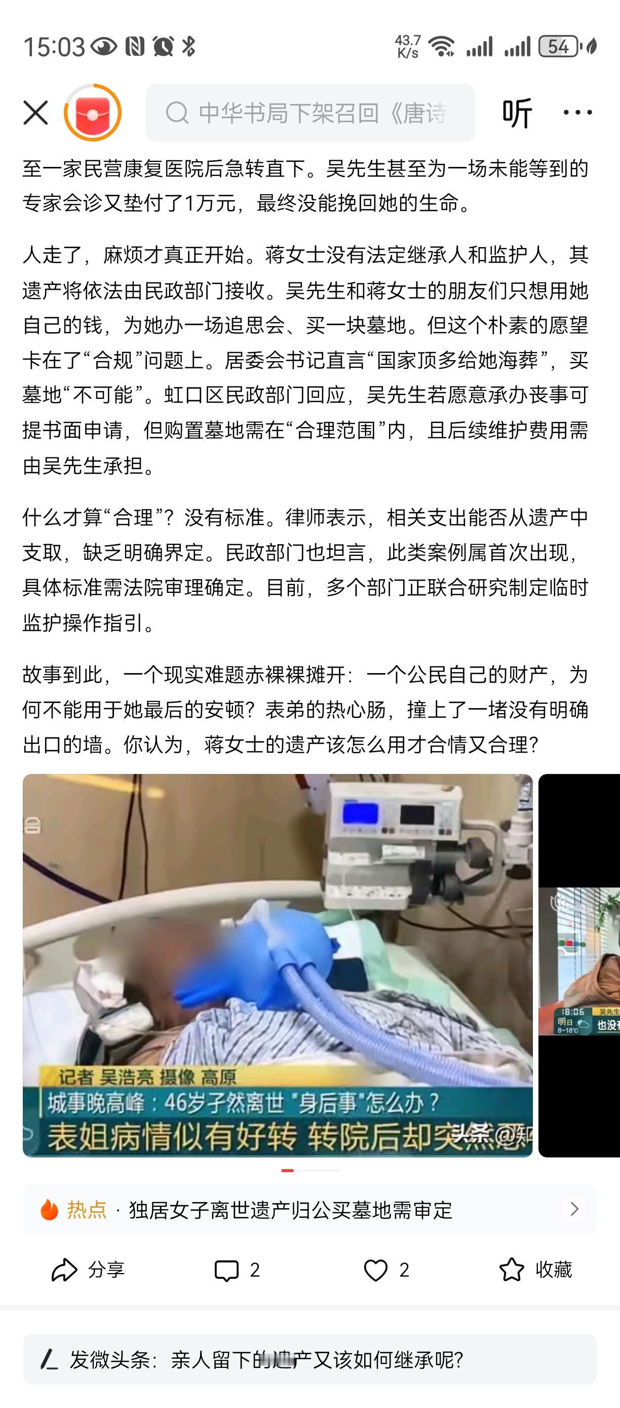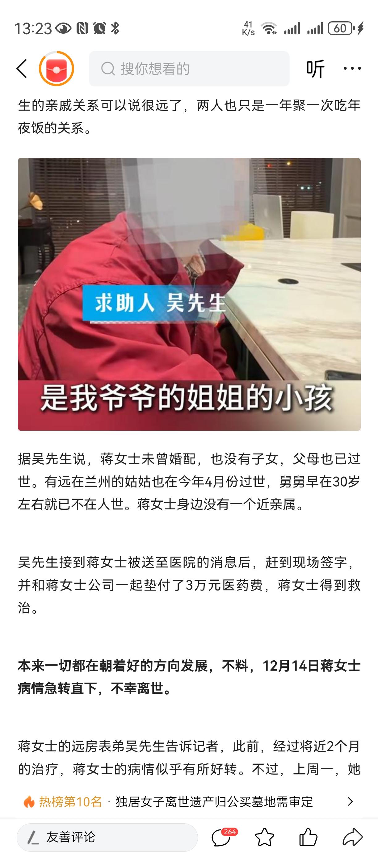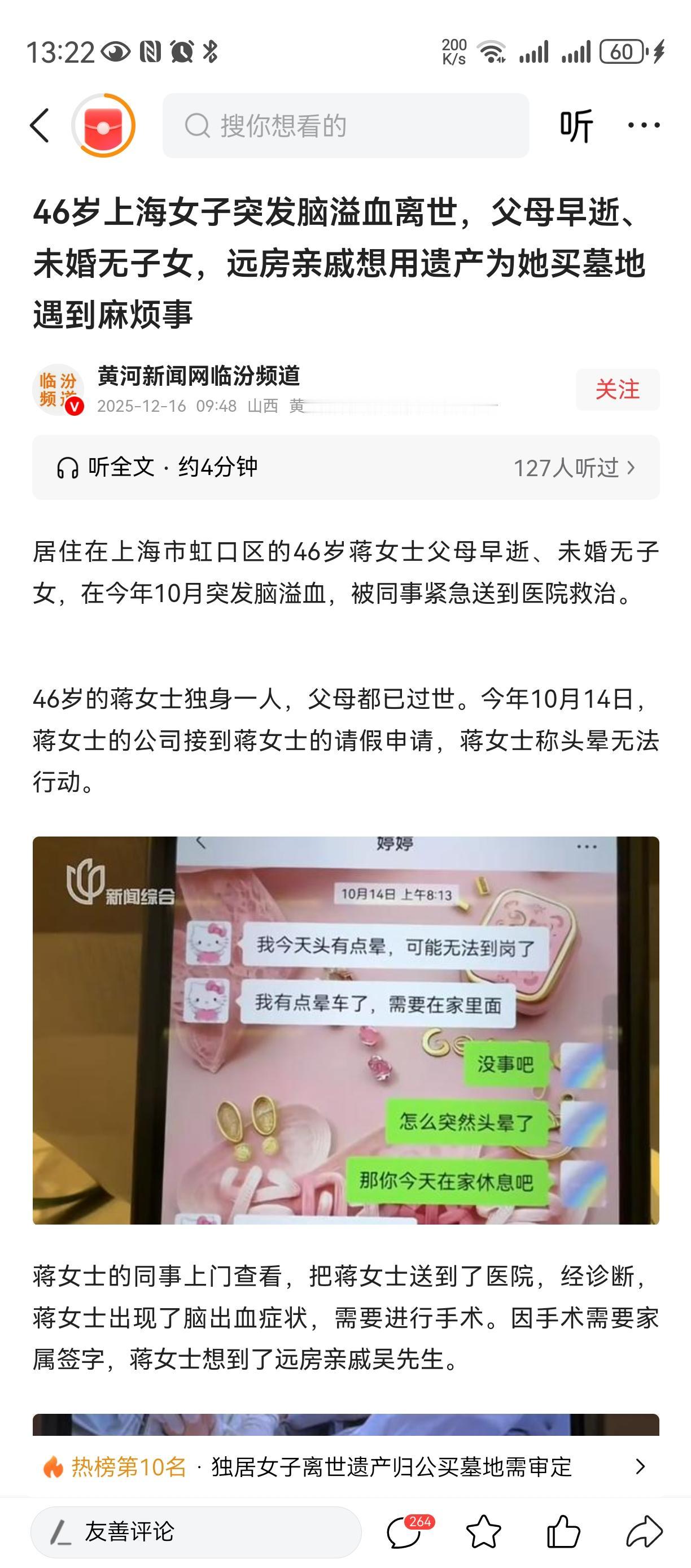 上海一批单身今天涉涉发抖[笑哭][笑哭][笑哭] 该吃吃该喝喝[祈祷][祈祷][祈祷] 君不见, 这个46岁的不婚单身女, 生命定格在2025年12月14日[祈祷][祈祷][祈祷] 无父无母无儿无女无直系亲属无子女单身女人 上海中老年人 这种人在社会有多少? 我怀疑真不少? 能够海葬也算一种明智[祈祷] 就是她亲戚垫付的钱希望遗产接收方能够足额覆盖, 这是位善良的人, 不能让他吃亏[祈祷][祈祷][祈祷]