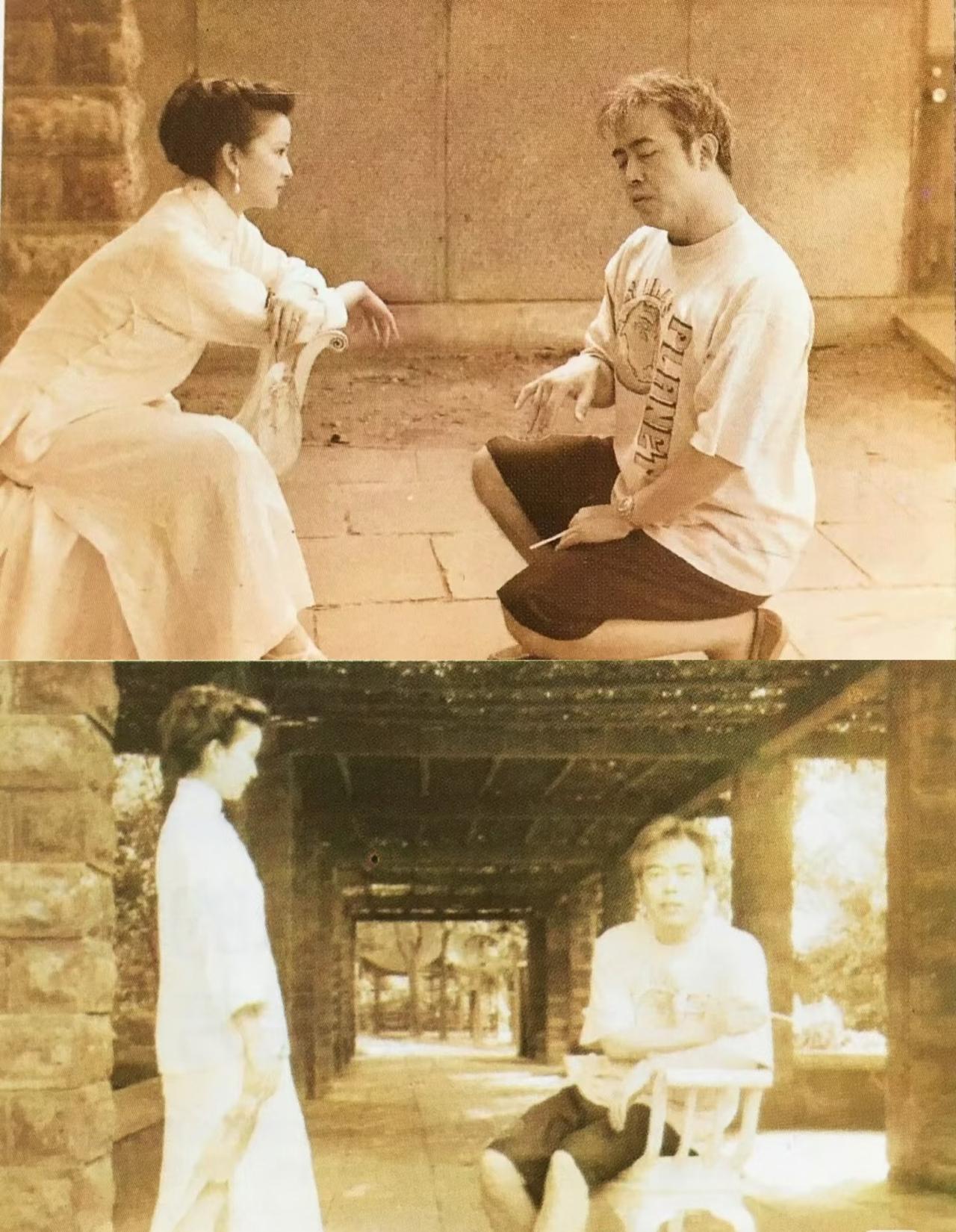 当年何晴曾试戏电影《风月》,导演陈凯歌曾亲自给何晴讲解戏中角色。 陈凯歌蹲在地