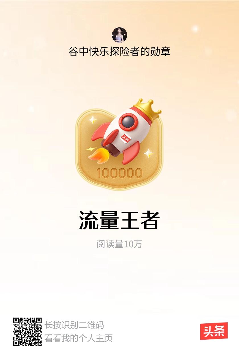 我获得了【流量王者】勋章!邀请你一起集头条勋章、记创作之路!