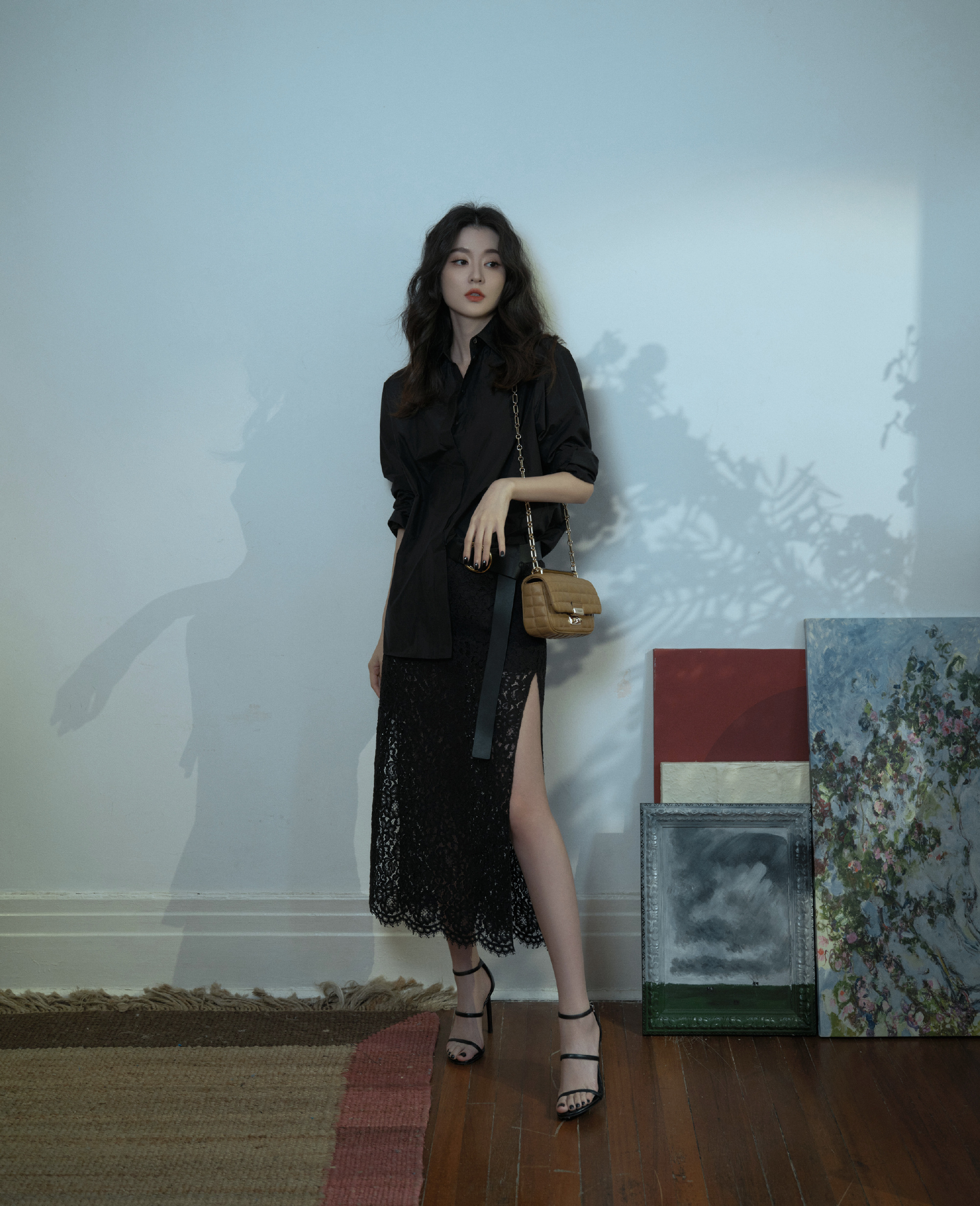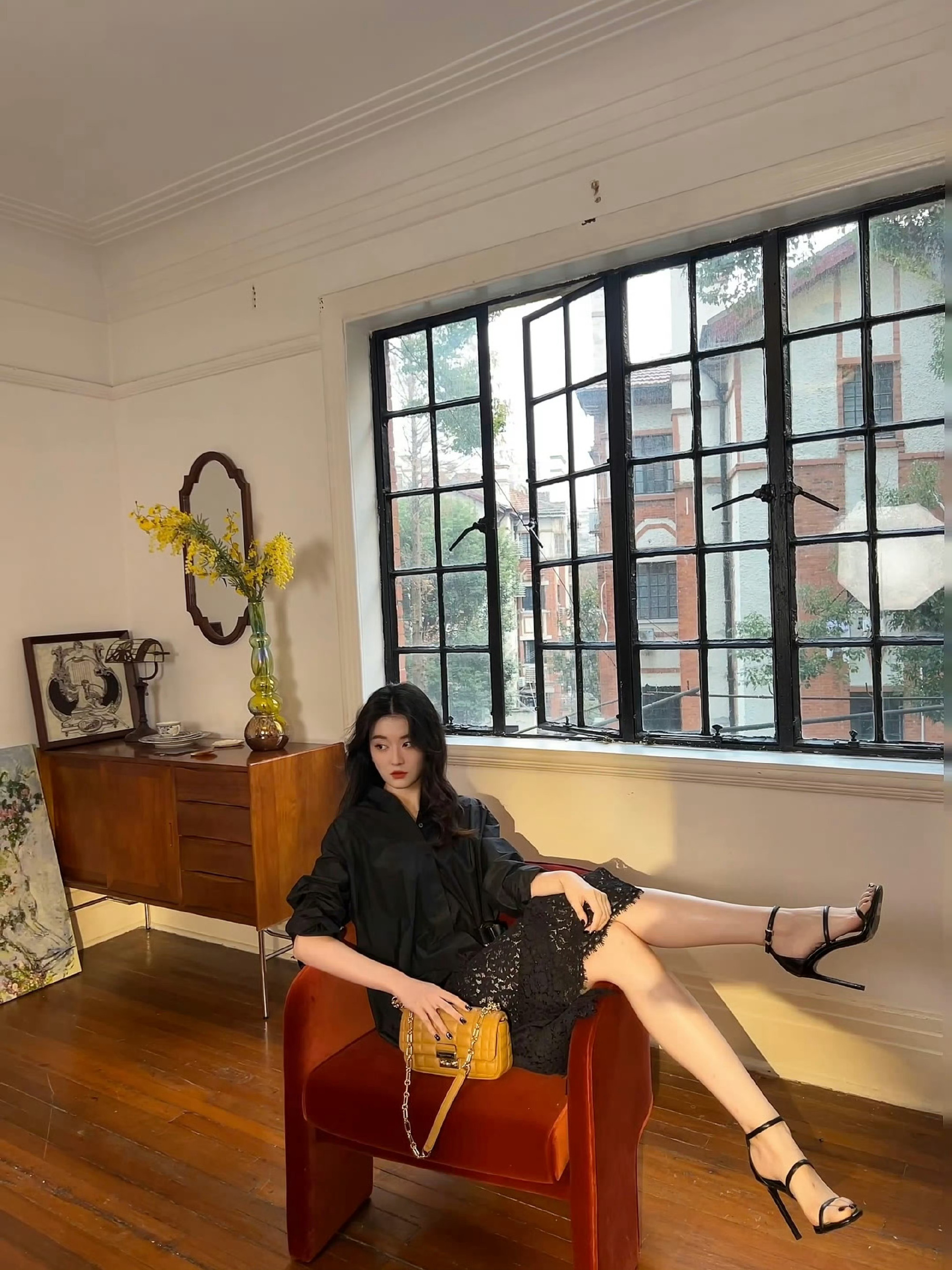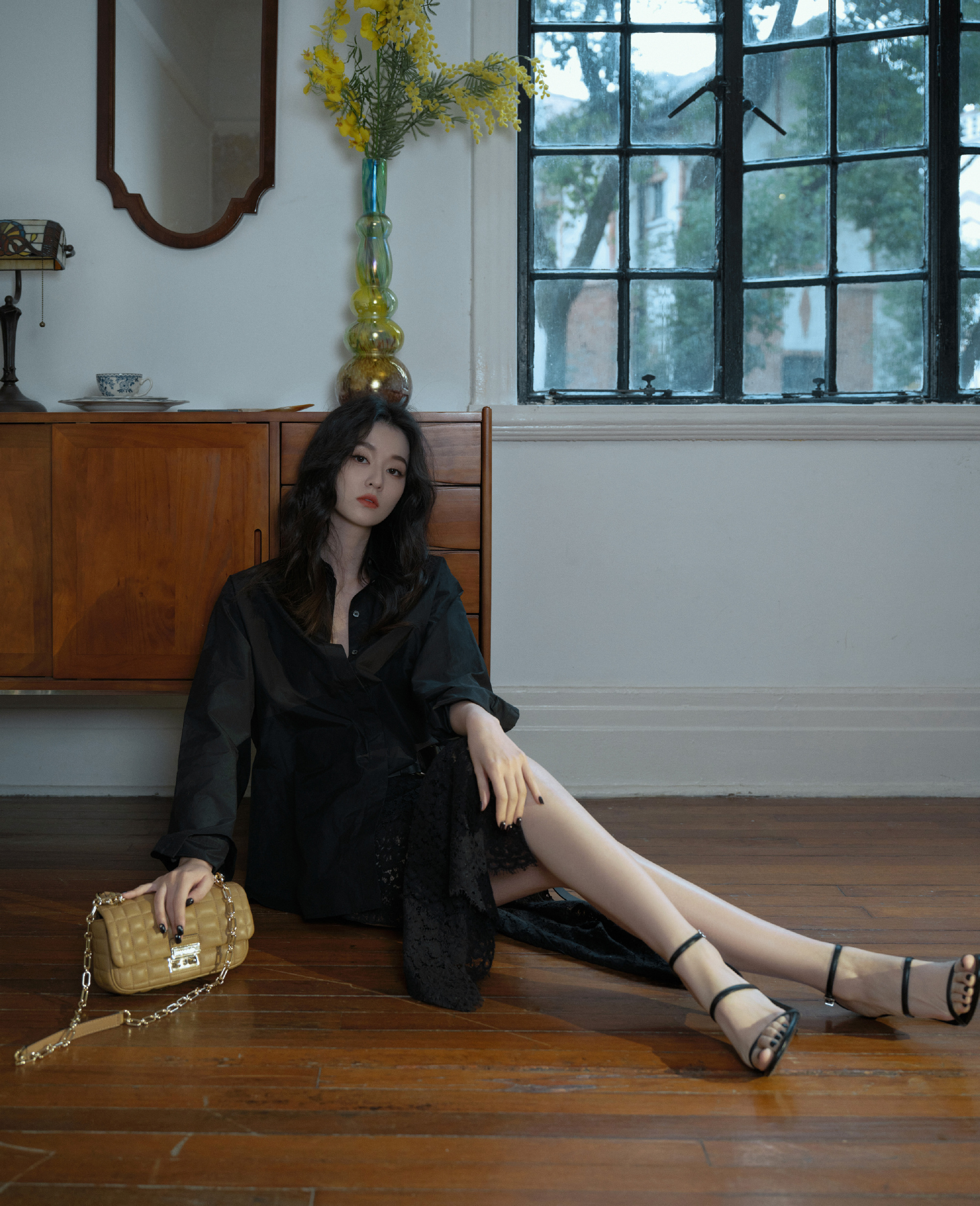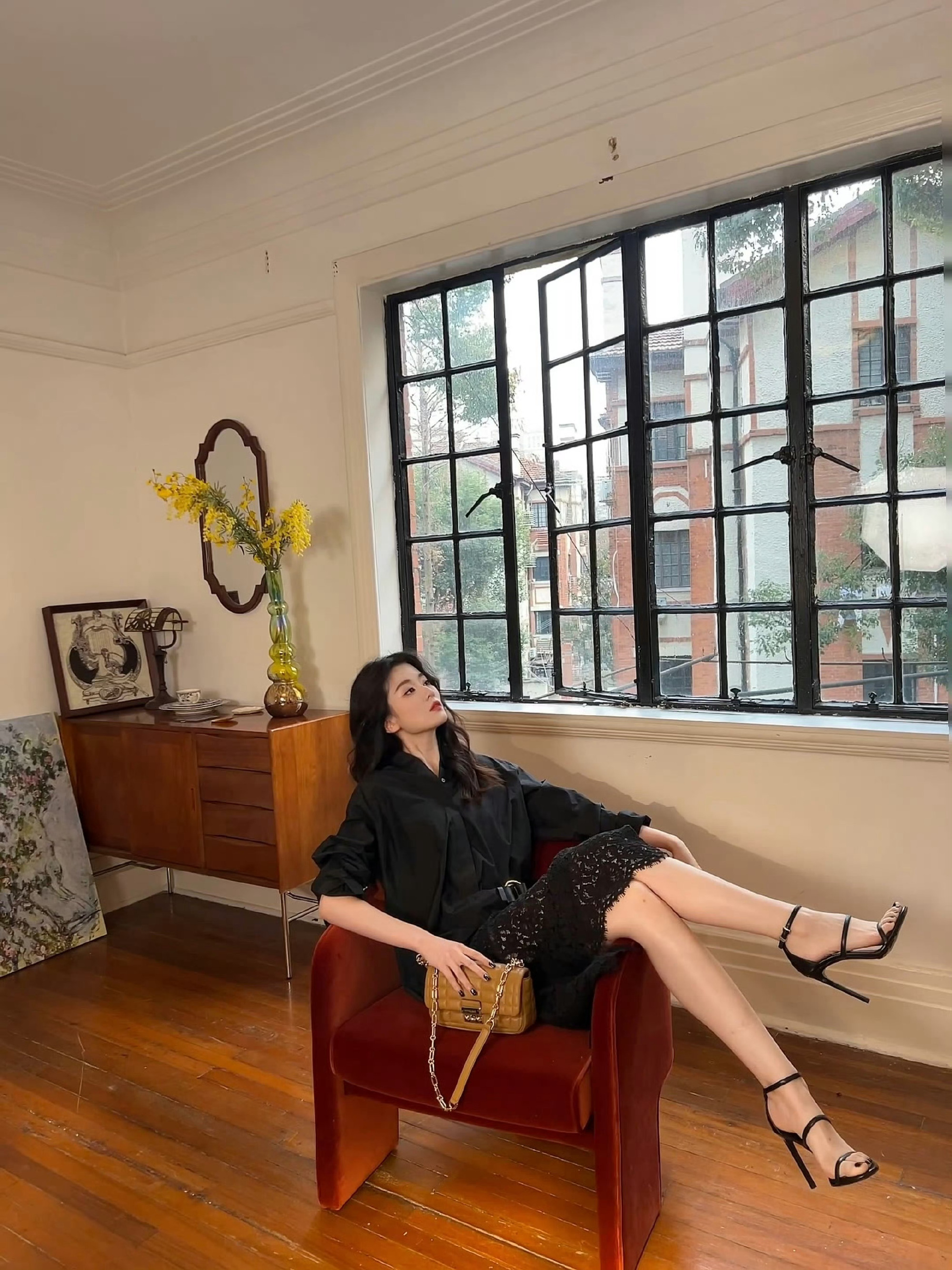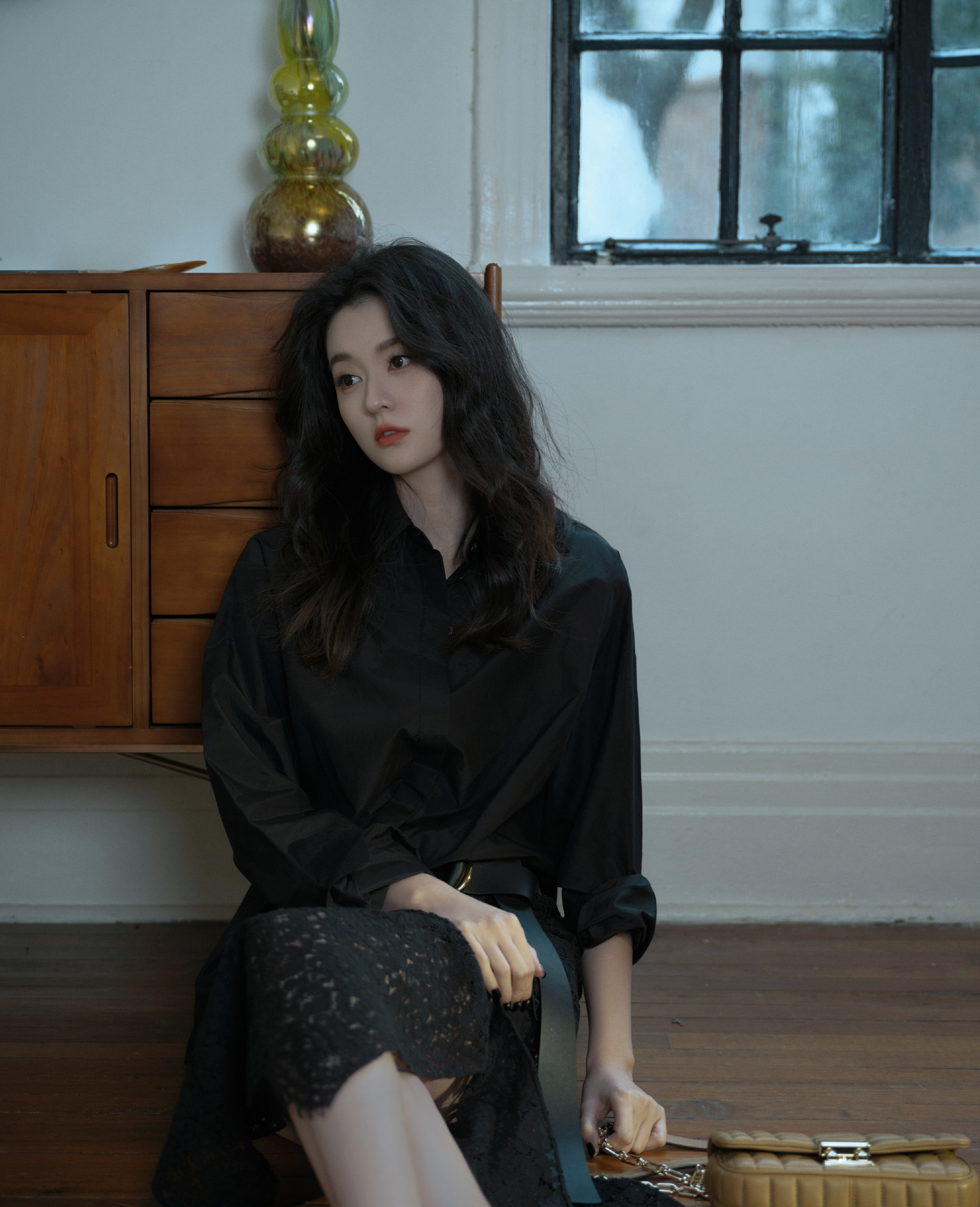 乔欣,黑色蕾丝裙美腿妆造,优雅魅力满满。乔欣