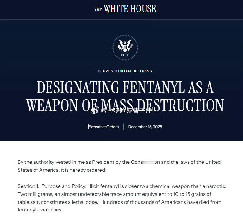 美国将芬太尼列为大规模杀伤性武器芬太尼:我何德何能