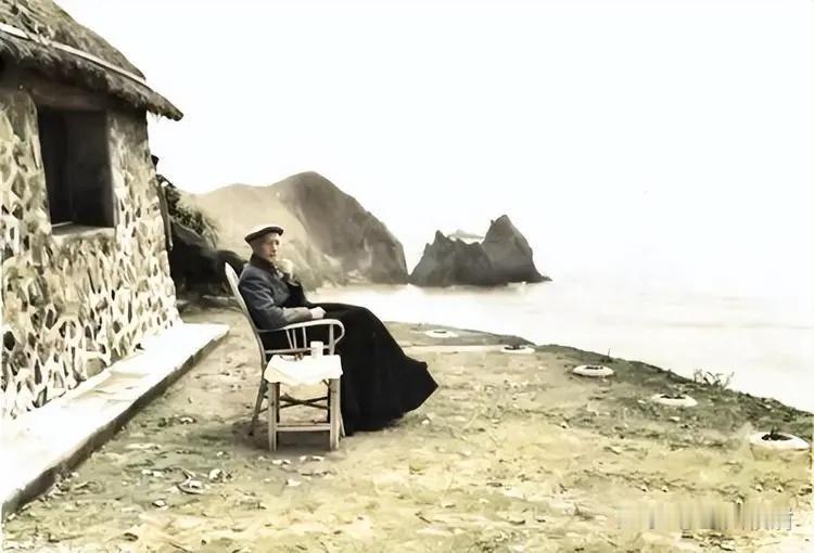 1954年,溃败台湾5年之后的蒋介石,最后一次踏上故土,悄悄回到了浙江。 浙江台州大陈岛*,距离蒋介石的老家奉化溪口*非常近,只有一百多公里◇因此当他远望故乡时,百感交集,内心涌动着无限的思乡之情。 为了缓解浓郁的思念,蒋介石就独自坐在大陈岛的海边眺望家乡,从而留下了几张令人动容的照片…… 1954年蒋介石在儿子蒋经国的陪同下,乘军舰前往浙江大陈岛进行了防务视察。可以说,那一天他的心情格外激动,因为这意味着离开大陆五年后,终于可以再次踏上梦魂牵绕的“故土”了。10点钟时,蒋介石登上了大陈岛,在明媚的春光下,他极目远眺宁波的方向,感觉故乡是那么可爱,内心瞬间涌动着无限向往,但同时也充斥着惆怅与酸楚。于是就让随从搬来一张藤椅,坐在藤椅上,望着家乡的方向,出了神,迟迟没有缓过来。此时此刻,他或许想的是国内战争为何失败,或许想的是安葬在老家的母亲王采玉,以及那回不去的童年……难掩激动之情,在当天的日记中,他留下了“故乡美”三个字。蒋介石在大陈岛一共逗留了三天,最后才在“恋恋不舍”中登上军舰返回了台湾。