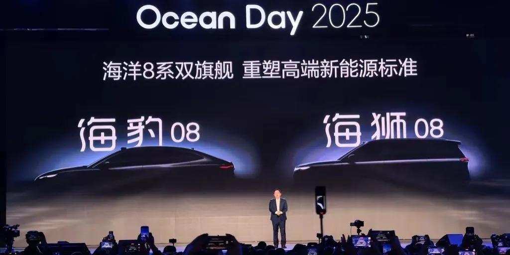 2025年12月15日,在比亚迪海洋四周年盛典上,比亚迪海洋网发布了两款高端车型————海豹08和海狮08的预告图,并正式为其定名。这两款车作为海洋8系双旗舰,将于2026年第一季度亮相,有望搭载多项最新技术,或冲击中高端市场。
