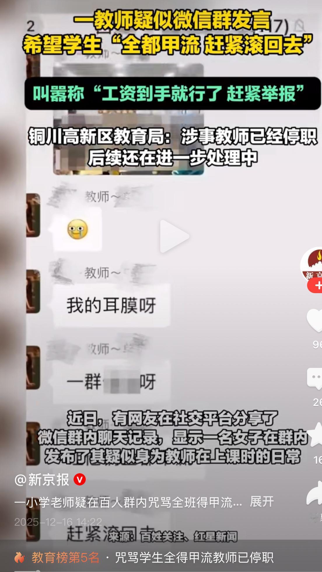 编制不是免死金牌! 不能因为有编制就口无遮拦,骂全班学生得甲流。有些老师不知道是怎么想的,多一事不如少一事的道理都不懂。老师们的形象就被这些害群之马给毁坏了。如果不想当老师可以辞职,想当老师在微信群发这样的言论就是自找麻烦。所以有些人的行为无法用正常人的思维理解。铜川市这个老师目前停职了,也给所有老师提个醒,老师作为公众人物一定要谨言慎行啊。