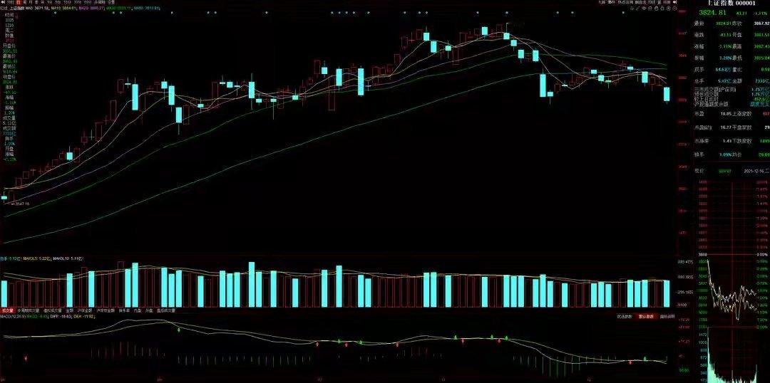 12月17日A股策略:关键时刻!国家队突发维稳宣言!市场何时能够见底?专注A股市场每日实战操作,助力散户投资不迷路!若你并非长线投资者,想要在A股市场站稳脚跟,就必须认清一个核心逻辑:周密的布局计划只是成功的开端,唯有严守操盘纪律,才能收获最终的投资硕果!大势研判周二A股市场呈现缩量下跌态势,成交量较此前缩减400亿元,降至1.75万亿水平。从技术形态分析,大盘已连续3个交易日承压于5日均线下方,市场悲观情绪持续升温,最终选择向下变盘。周二中阴线下跌后,大盘走势明显向下偏离60日均线,中短期趋势转弱的风险显著攀升。由于当日K线并未出现明显长下影,且距离11月24日低点仅一步之遥,预计后续几个交易日市场仍将延续向下拓展空间的走势。盘面跟踪周二沪深两市个股呈现普跌格局,上涨家数仅1000家,下跌家数多达4300家,市场亏钱效应尽显。从板块涨跌幅来看,零售板块领涨两市,是唯一涨幅超2%的细分领域;除此之外,免税店、预制菜、乳业、旅游酒店等防御性板块逆势走强,无人驾驶板块同样表现出相对抗跌的特质。跌幅榜上,顺周期与AI软件端两大主线成为重灾区,其中顺周期板块内的贵金属、光伏等细分方向领跌,AI软件端的SORA概念则表现疲软。值得注意的是,近期市场主线热点在周二全军覆没,且所有主线热点的跌幅均超过大盘整体跌幅,足以印证当前市场运行格局的不健康。消息面跟踪1. 12月15日,社保基金召开党组会议,明确提出要充分发挥长期资金、耐心资本的优势作用,在坚守安全底线的前提下,积极服务国家发展战略需求,进一步助力科技创新与产业创新的深度融合。2. 北京时间今晚21:30,美国将公布因政府关门而推迟发布的11月非农就业报告。市场普遍认为,若此次美国就业数据呈现温和疲软态势,有望助推美股走高,这将进一步加大美联储后续降息的概率。市场资金面周二机构与游资的操作分化程度有所收窄。机构买盘规模出现中幅萎缩,卖盘则微幅增加,资金流向从周一的中幅净流入转为持平状态,抄底意愿明显下降。游资的买盘与卖盘规模较周一均无明显变化,延续小幅减仓的操作节奏。从板块资金流向来看,机构与游资均未对任何主线热点进行加仓,且在商业航天板块出现显著分歧——机构对该板块展开大幅减仓,游资则呈现流入流出基本持平的状态。鉴于机构与游资均未向其他板块进行大规模调仓,短期内市场难有新的主线热点接力崛起。