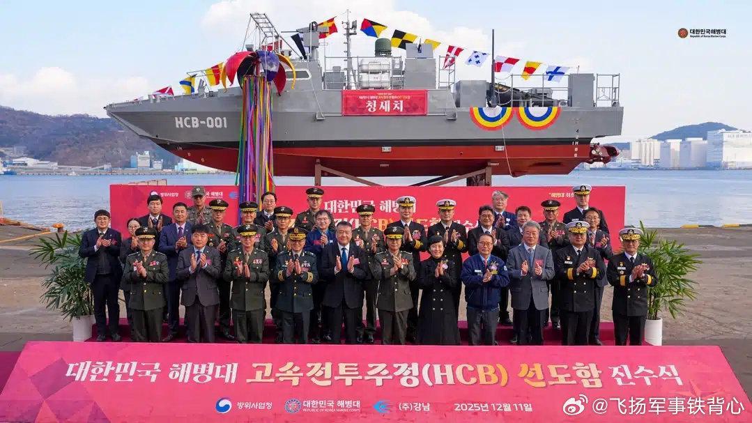 韩国海军陆战队下水首艘高速突击艇——韩国海军陆战队近日正式下水其历史上首艘“高速突击艇”,这是该兵种自成立以来首次列装并操作的自有作战舰艇,具有里程碑意义。该平台完全由韩国自主设计和建造,在速度、防护和火力方面均显著优于此前使用的硬壳充气艇(RIB),预计将显著提升前沿地区的快速反应与两栖作战能力。该型艇被命名为 HCB(High-Speed Combat Boat,高速作战艇),是韩国海军陆战队成立以来首次引入并运营的舰艇平台。与现役RIB相比,HCB按专用作战艇标准设计,具备更高航速、更强防护和显著增强的火力。其军种命名为 “Cheongsaechi(青鲭旗鱼/条纹马林鱼)”,寓意高速与机动突击能力。约70名来自韩国海军陆战队、防卫事业厅(DAPA)及造船公司的代表出席仪式。海军陆战队司令 Joo Il-seok 中将 发表致辞称:“今天下水的高速突击艇是韩国海军陆战队首艘自有舰艇,集中体现了韩国先进的本土造船能力和国防科技水平。形成战斗力后,将通过快速投送增援等任务,强化海军陆战队保卫国家和人民的能力。”HCB技术特点外形尺寸:与瑞典CB90相似但略大,长约18米、宽约4米武器配置:12.7毫米遥控武器站(RCWS)2挺K-16机枪(7.62×51毫米)推进与性能:水喷推进系统最高航速约45节具备浅水高机动能力防护与投送:关键部位加装弹道防护,提升艇员与突击分队生存性设有小型充气艇投放区配备登陆跳板,支持陆战队员快速上下艇,适用于两栖/滨海行动作战运用引入高速突击艇后,韩国海军陆战队预计在西海五岛等前沿地区,可较单纯依赖RIB执行更快、更安全、更高效的快速反应行动;同时也将用于两栖作战,包括在突发情况下夺控并建立滩头阵地。项目进度HCB项目为完全国产化。2024年7月与江南造船签署建造合同,2025年5月举行钢板切割仪式,8月铺设龙骨,12月11日首艇下水。按计划,首艇将在完成测试与评估后,于2026年12月交付韩国海军陆战队,随后进行部队融合,最终形成全面作战能力。飞扬军事 烽火问鼎计划 每天认识一件兵器