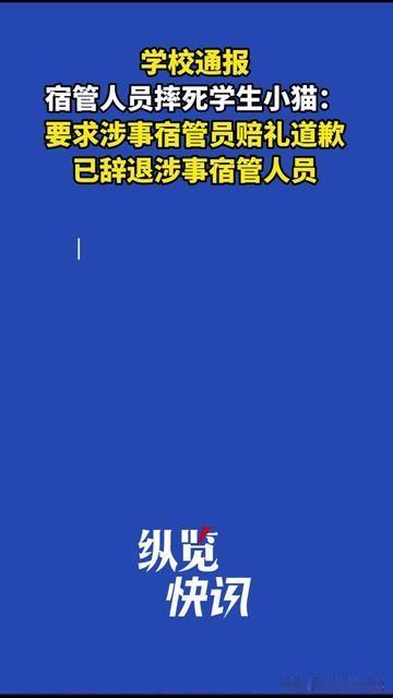 早八前还抱着小猫蹭脸,说“等我带猫条回来”。 下课推开门,宿管说“违规宠物,处理了”,猫摔在楼下草坪,身子都凉了。 谁大学没藏过小动物啊?藏的是违规,更是深夜赶论文时的暖脚团,是食堂打饭回来的小等客,那不是东西,是异乡的小室友啊! 宿管本是帮着看顾生活的人,怎么把管理变成了摔死?规则是死的,人心该有温度吧? 学校说辞退+道歉,可那只等猫条的小猫,再也等不到主人了。 想起我当年藏的兔子,每天怕宿管查,可从没想过会被处理,它可是天天陪我吃泡面的家庭成员啊! 管理要讲规则,可对生命的共情,难道不是最基本的吗? 大家怎么看?