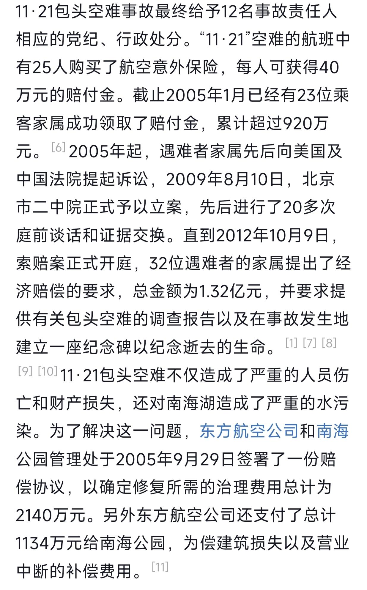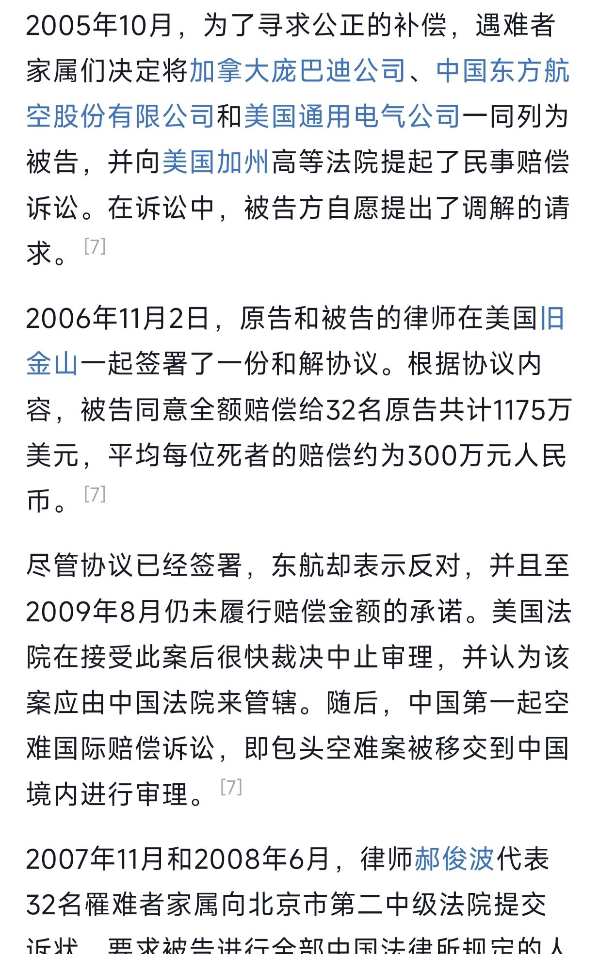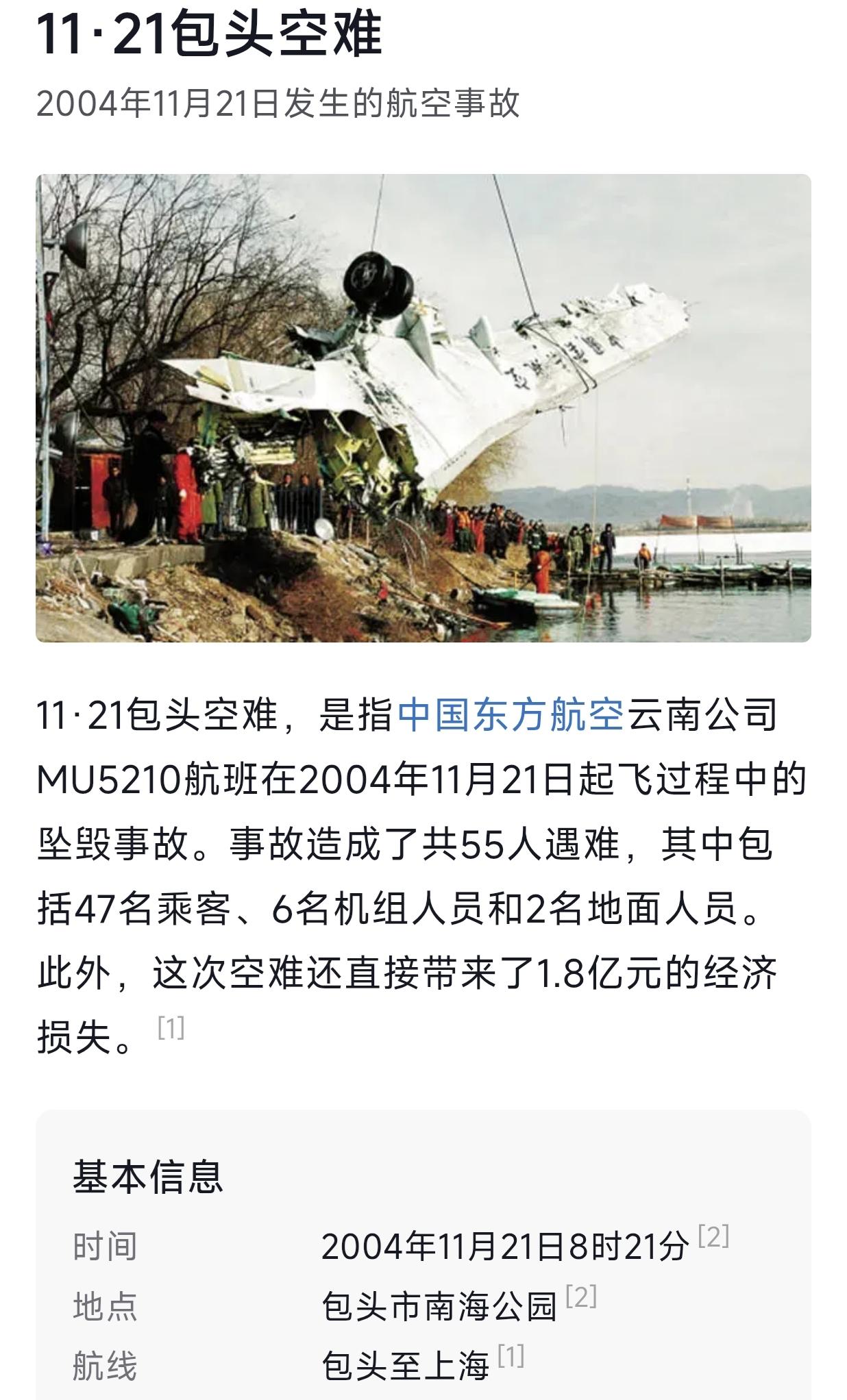2004年发生的包头空难,部分遇难者家属至今未得到应有的补偿!本来加拿大庞巴迪,美国通用已经和遇难者家属达成和解协议,每位死者将得到约为300万的赔偿,但是东航反对!坑自己最狠的永远是所谓的自己人!真是一言难尽!