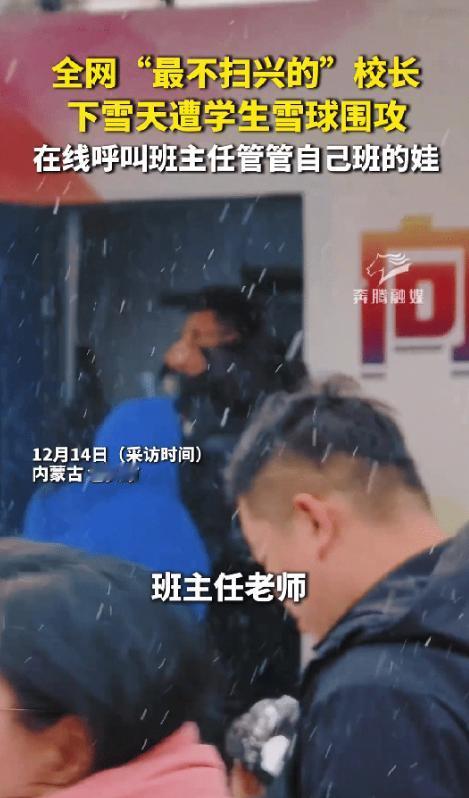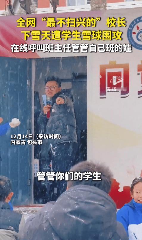 内蒙古包头迎来了第一场雪,一所学校的校长站在讲台上发话时,意外遭到学生们的“围攻”——雪球纷纷飞来。校长赶紧拿起麦克风,对班主任大喊:“班主任,管管你们的学生,打校长啦!”不过,话还没说完,他又被雪球砸中,而这一幕让网友们忍俊不禁。 事情的经过是这样的:包头下了第一场雪,校长决定允许学生们到操场上打雪仗,大家听后兴奋地冲了出去。为了确保学生的安全,校长站在讲台上提醒大家注意事项。 没想到,校长一开口,就被学生们围着“攻击”了。虽然看到大家玩得开心,校长也忍不住笑了,但面对不断飞来的雪球,他假装向班主任“告状”:“班主任,管管你们的学生,打校长啦!” 就在他话没说完,更多雪球飞向他,校长也只能笑着接受,脸上满是笑容。操场上有的学生激烈地打雪仗,有的则躺在雪地上享受雪的乐趣,整个操场弥漫着欢声笑语。 校长表示:“今天是学校的第一场雪,我希望孩子们能在校园里尽情玩耍,享受雪带来的快乐。学校本就是一个释放孩子天性、培养全面发展的地方。” 这位校长的言辞让人感动,尤其是他提到“学校本来就是一个释放孩子天性,育人的场所”,真的是非常懂得学生的需求。能遇到这样一位校长,学生们真是幸运。学校不仅是学习的地方,也是孩子们德智体美劳全面发展的舞台。