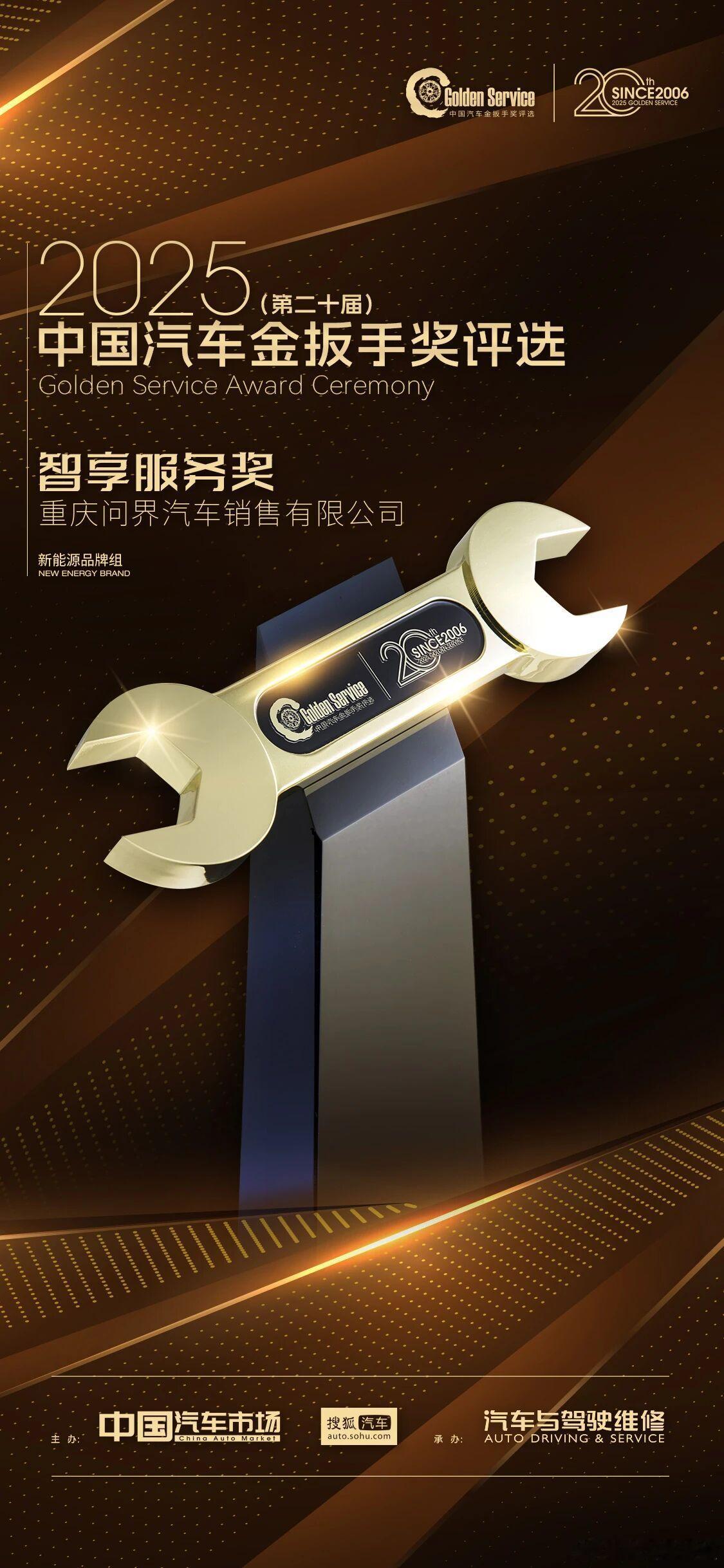 问界荣获2025中国汽车金扳手奖评选“智享服务奖”!同时,全国多家AITO授权用户中心获评“2025金扳手服务百强质选店”,服务品质与用户口碑再获行业权威认可。我们始终秉持全心全意为用户服务的宗旨,致力于为用户提供更智能、更专业、更舒适的服务体验。赛力斯问界