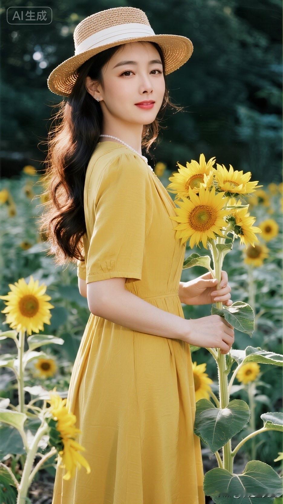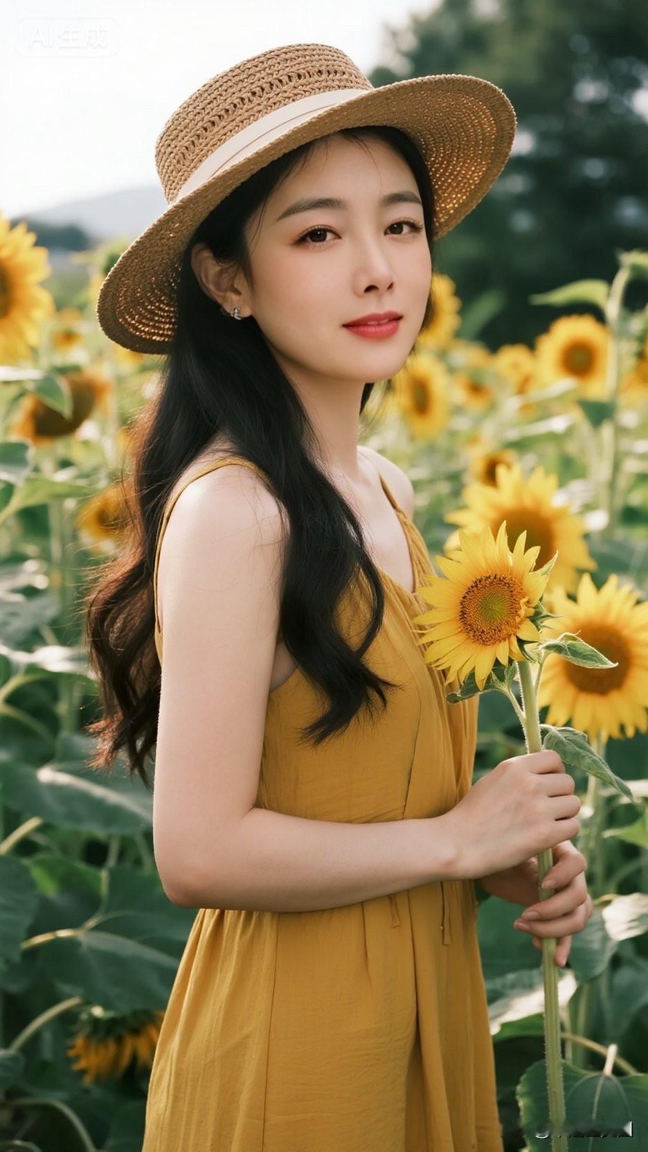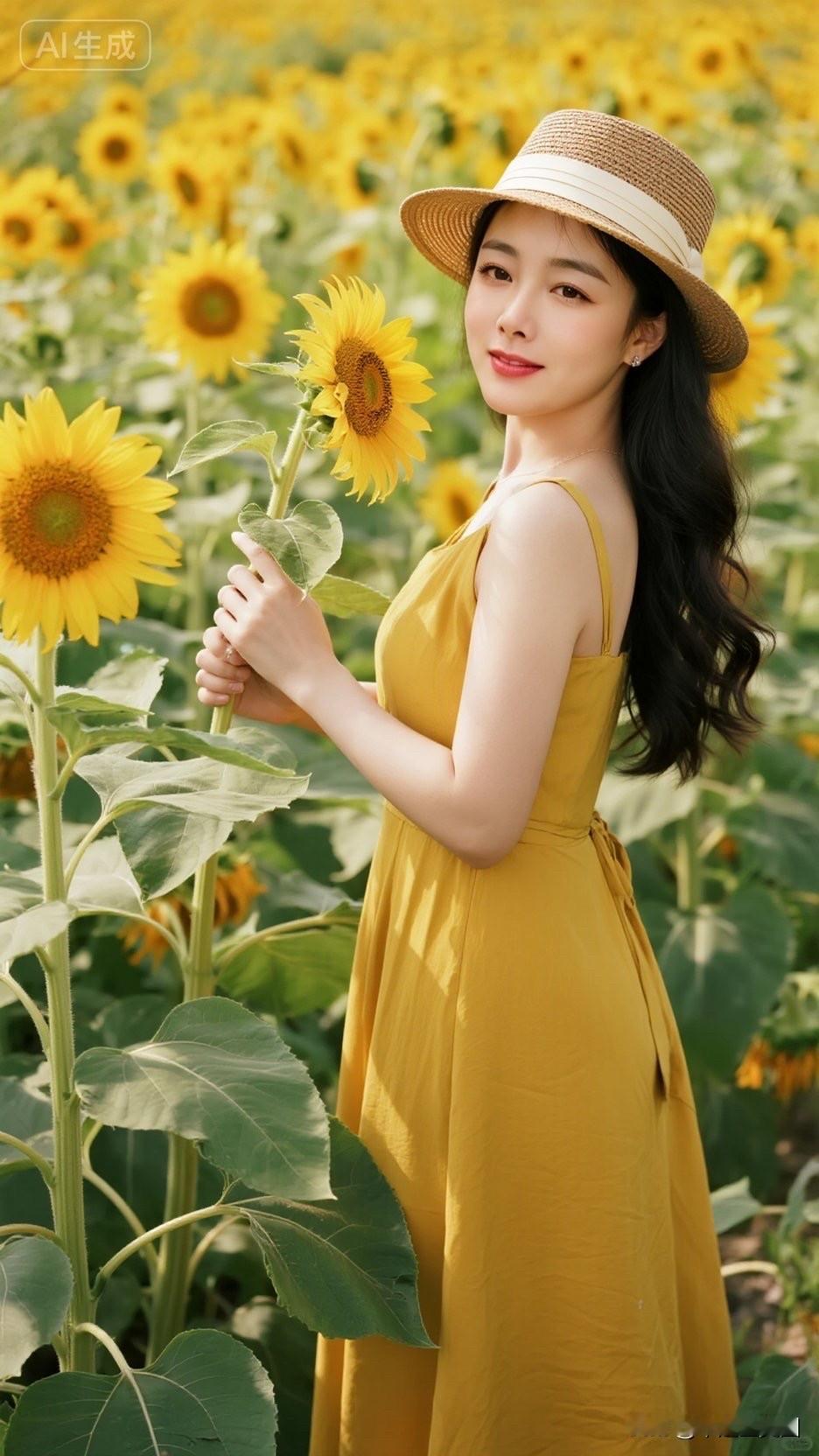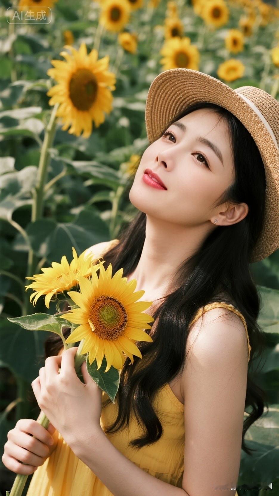 阳光下的向日葵女孩,温暖而美丽!🌻🌞