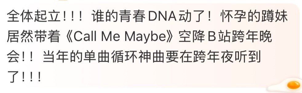 蹲妹怀孕登B站跨晚callmebaby怀孕的蹲妹居然带着《Call Me Maybe》去B站跨年晚会!!之前空降苏州还以为是旅游,原来是偷偷录舞台!这首当年单曲循环的神曲,跨年夜要和百万网友大合唱的画面已经狠狠期待了!B站你是懂怎么拿捏我们的!