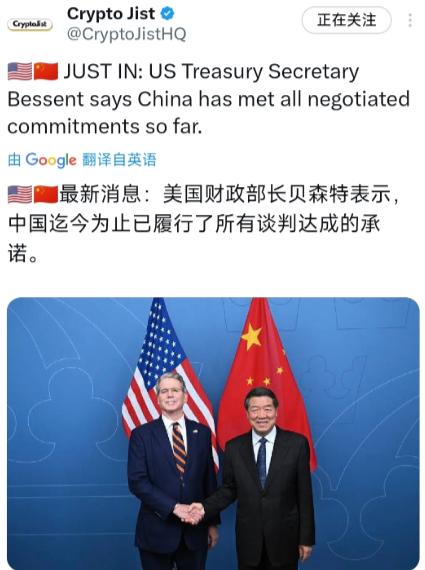 美国财政部长贝森特表示,中国迄今为止已履行了所有谈判达成的承诺。 美国财经圈和外交圈都在讨论一句话,这话出自美国财政部长贝森特之口,分量十足。在一场聚焦中美经贸关系的闭门论坛上,贝森特当着中美两国企业家代表明确表示:中国迄今为止已履行了所有谈判达成的承诺。 这话一出来,现场的美国企业家们反应挺直接,不少人当场点头认可,而一直关注中美经贸动态的观察家们则更清楚,这不是一句客套话,是基于实打实的事实给出的结论。 了解中美经贸谈判历程的人都知道,过去这些年双方坐下来谈过无数次,核心分歧往往绕不开“承诺与履约”这个话题。美方曾经不止一次表达过对中国履约能力的担忧,甚至有过不少质疑声音。 但这次贝森特作为美国财政领域的核心官员,公开给出这样的评价,显然不是一时兴起,而是对中国过往行动的系统性认可。财政部长的表态直接关联到美国对华经贸政策的走向,这番话背后,是中国多年来一步一个脚印兑现承诺的硬实力。 最让美方企业有感触的,应该是中国在知识产权保护上的大动作。以前不少美国企业来中国投资,总担心自己的技术秘密、商业机密得不到保障,甚至有企业因为侵权问题打过不少官司。 但现在这种顾虑正在慢慢消失,这背后是中国从法律到执法的全方位升级。2020年以来,最高法、最高检接连出台关于侵犯商业秘密的司法解释,把刑事立案的门槛进一步明确,还通过刑法修正案加大了处罚力度。 这些不是纸面上的条文,而是落到实处的行动。2024年一年,市场监管部门光是知识产权相关的执法专项行动就查处了近67.5万件案件,其中商标侵权和假冒专利案件就有4.39万件。 海关在进出口环节也没松劲,全年扣留了4.16万批侵权嫌疑货物,足足有8160多万件。美国礼来公司就有过切身经历,他们一位前员工私自下载了21个核心商业秘密文件,公司报警后,法院很快就下达了行为保全裁定,禁止对方披露使用这些文件,这起案件也成了中国保护外国企业商业秘密的典型案例。 现在越来越多的美国科技企业、药企愿意把研发中心设在中国,就是看中了这种越来越完善的保护体系。除了知识产权,农产品采购也是中美第一阶段经贸协议里的重点内容,中国在这方面同样没打半点折扣。 要知道,中国是全球最大的农产品进口国,美国则是最大的出口国,双方在农业领域本来就有天然的合作优势。 2020年协议生效后,中国很快就对美国多种农产品解除了进口限制,像30月龄及以上的牛肉、含反刍动物成分的宠物食品,还有美国的婴儿配方乳粉、巴氏杀菌乳等,都逐步放开了市场。 美国农业部的数据显示,2023年美国对华农产品出口达到291亿美元,中国稳稳占据美国农产品第一大出口目的地的位置,占比接近五分之一。 尤其是大豆,2024年美国大豆出口总额245亿美元,其中近128亿美元都销往了中国,相当于一半的大豆都卖到了中国市场。对美国农民来说,这可是真金白银的收益,2023年平均每个美国农民对华出口收入接近9000美元。 虽然2025年4月出现过中国短期缩减猪肉和大豆订单的情况,但熟悉市场的人都知道,这是关税影响下的阶段性调整,不影响长期履约的大趋势,美国农业部在2025年的农业展望报告里,依然预计对华农产品出口能达到220亿美元。 中国还在不断扩大外资准入,用“准入前国民待遇加负面清单”制度代替了过去的逐案审批,2024年中央办公厅和国务院办公厅联合发布的市场准入意见,更是强调要坚持国民待遇原则,让外资企业在中国市场有更多选择权。 这种开放不是单方面的让步,而是基于自身发展需要的主动作为,既兑现了对美国的谈判承诺,也让中国消费者和企业享受到了更多便利。贝森特的这番表态,在中美商界都引发了不小的反响。 美国中国商会很快发布了一份调查报告,显示超过七成的在华美资企业认为中国履行了经贸协议中的核心承诺,有近六成企业计划在未来两年扩大在华投资。 其实熟悉中美经贸关系的人都清楚,中国从来都是负责任的合作伙伴。从完善知识产权法律体系到扩大农产品进口,从优化市场准入环境到保护外资合法权益,每一项行动都经得起检验。贝森特的表态,本质上是对这种事实的认可。 对中美两国来说,经贸合作不是零和博弈,中国履约不仅让美国企业和农民受益,也让中国获得了更优质的产品和技术,实现了互利共赢。 当然,中美经贸关系依然存在一些分歧,未来的谈判之路也不会一帆风顺。但贝森特的这句话至少传递了一个积极信号:只要双方都拿出诚意,基于事实沟通,就能找到解决问题的办法。 中国用实际行动证明了自己是值得信赖的谈判伙伴,接下来就看美方能否跟上节奏,用同样的履约精神回应中国的诚意,让中美经贸关系真正回到健康稳定的轨道上。毕竟,对两国企业和民众来说,合作共赢永远比相互猜忌更有意义。