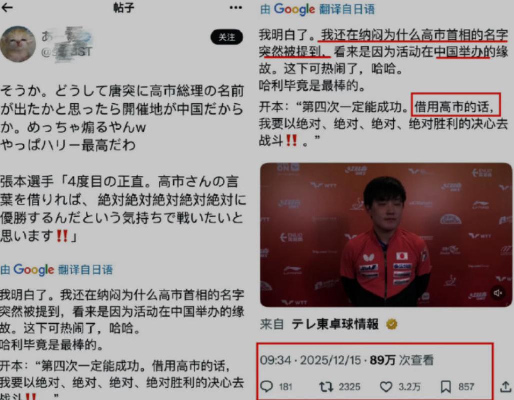 张本智和致敬高市早苗!日本民众称他是故意报复,比日本人还日本人。张本智和最近的行