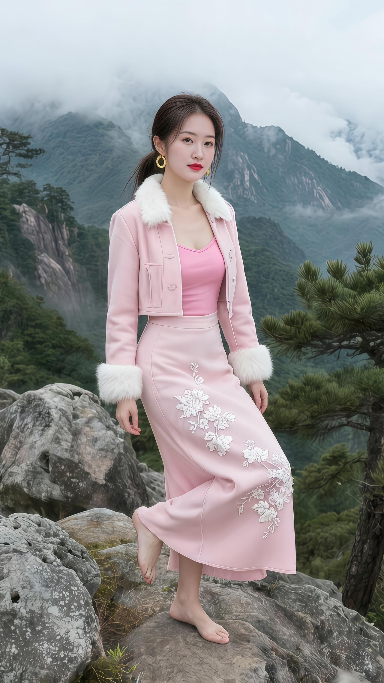 大自然风景人间仙境 山上美景 气质美女 穿搭