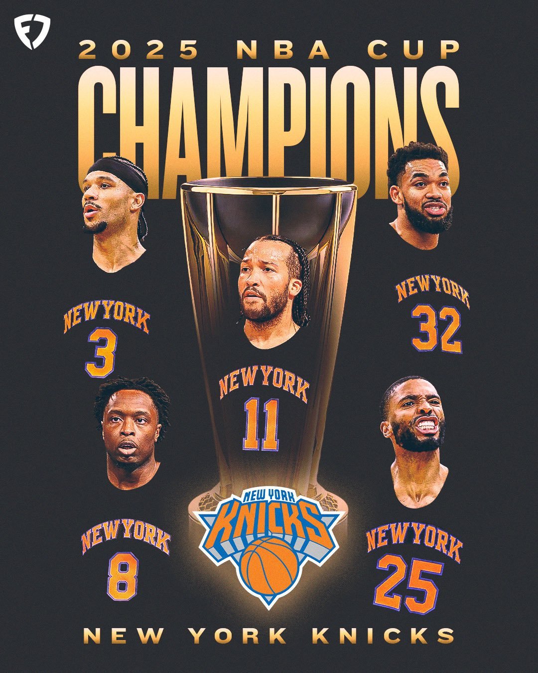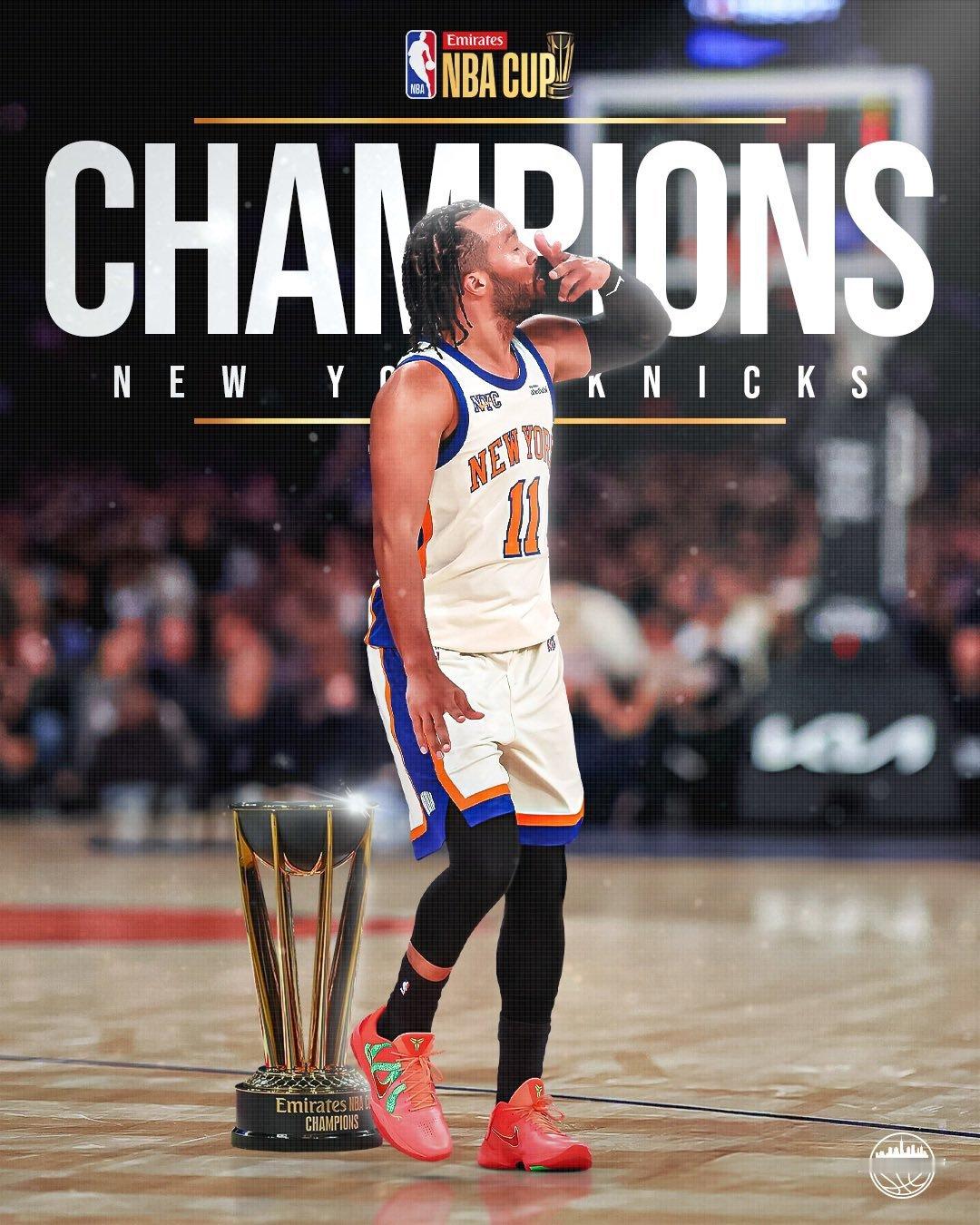 NBA杯冠军!!今天的尼克斯:🏆——布伦森,25分4篮板8助攻——阿奴诺比,28分9篮板3助攻——唐斯,16分11篮板——米罗,4分15篮板,其中10个前场篮板——克拉克森,15分,正负值+15尼克斯124-113战胜马刺,拿下本赛季NBA杯冠军,每人赢得53万美元奖金!!尼克斯vs马刺尼克斯夺NBA杯总冠军尼克斯神兵天降