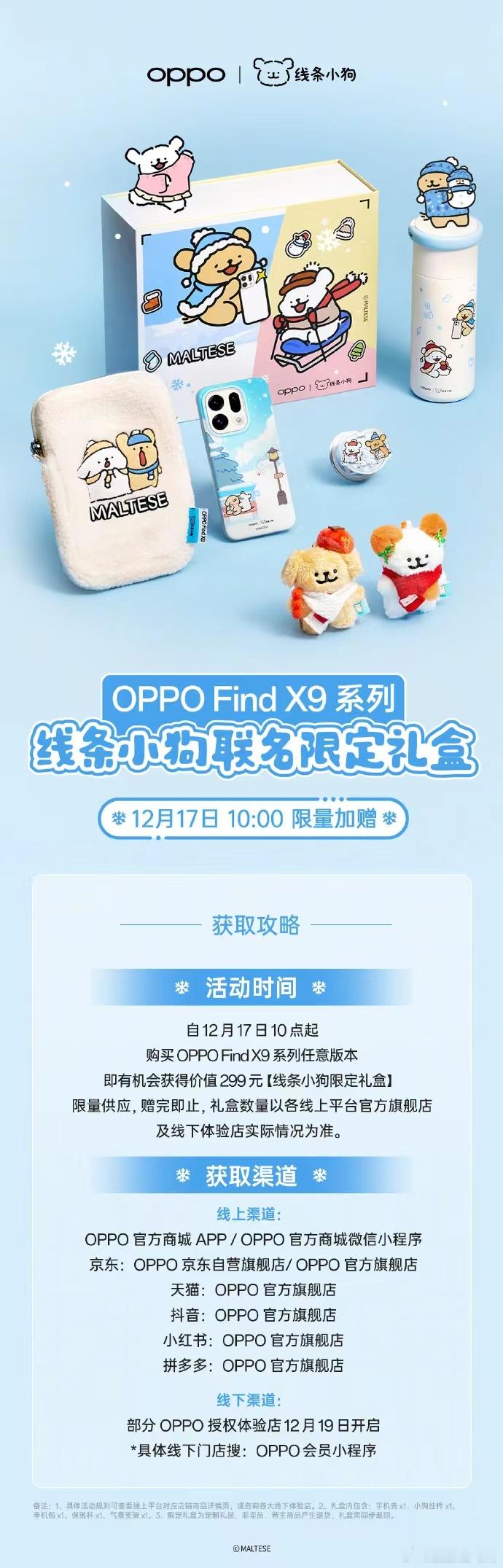 ❄️谁能拒绝软乎乎的线条小狗陪自己过冬?!OPPO Find X9系列线条小狗限定礼盒来啦🧣小狗冬日出游记,4K实况超清晰。和小狗一起享受冬天旅行的乐趣吧!12月17日起,购买任意OPPO Find X9 系列,即可免费赠送线条小狗 限定礼盒,线上线下均可购买。