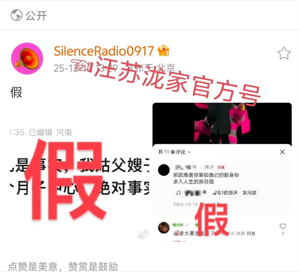汪苏泷方辟谣 汪苏泷对接号火速辟谣有孩子,大红的“假”字🈶,甚至21年工作室就