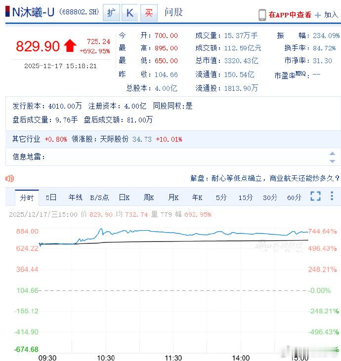 【沐曦股份中一签最高赚39.5万】沐曦股份登顶A股最赚钱新股按单签500股计算,N沐曦打新投资者首日盈利规模近36.26万元。若以盘中755.15%的最大涨幅测算,沐曦股份单签最大盈利达39.52万元。这两项数据不仅双双超越近期“大肉签”摩尔线程,同时也助力沐曦股份登顶A股史上“最赚钱新股”,成为首日单签盈利、单签最大盈利双纪录创造者。(新浪财经)