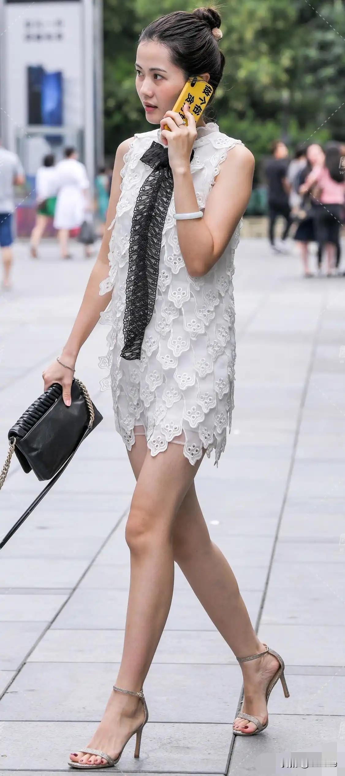 优雅黑白蕾丝裙,搭配精致高跟鞋,都市时尚感十足!👗👠