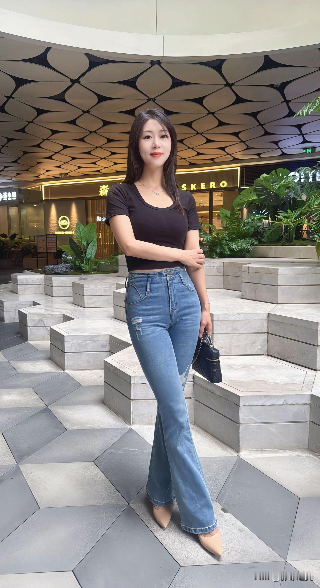 简约黑T配微喇牛仔裤,舒服又显瘦,随手定格日常的小美好。