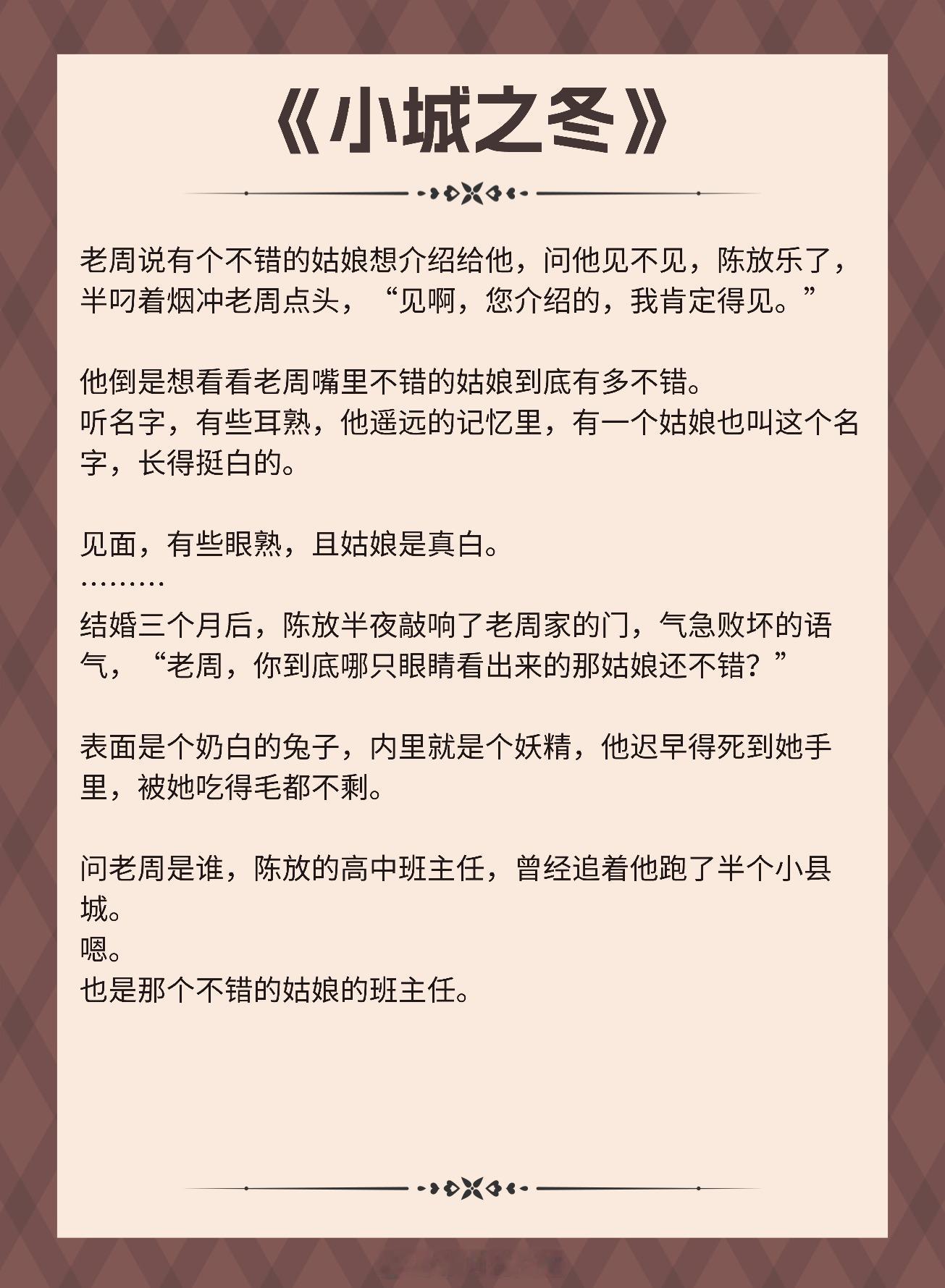 【温情治愈的小镇文学】她是他生命里,唯一的变数。《小年小月》作者:耳东兔子《情人》作者:舍目斯《小城之冬》作者:冬日牛角包《耕云钓月》作者:叹西茶《楼上楼下》作者:东边月亮圆《南城小巷》作者:时玖远《停在你的世界里》作者:大芹菜《无何有乡》作者:Twentine《皇冠梨售罄》作者:僵尸嬷嬷推文言情小说推荐推文