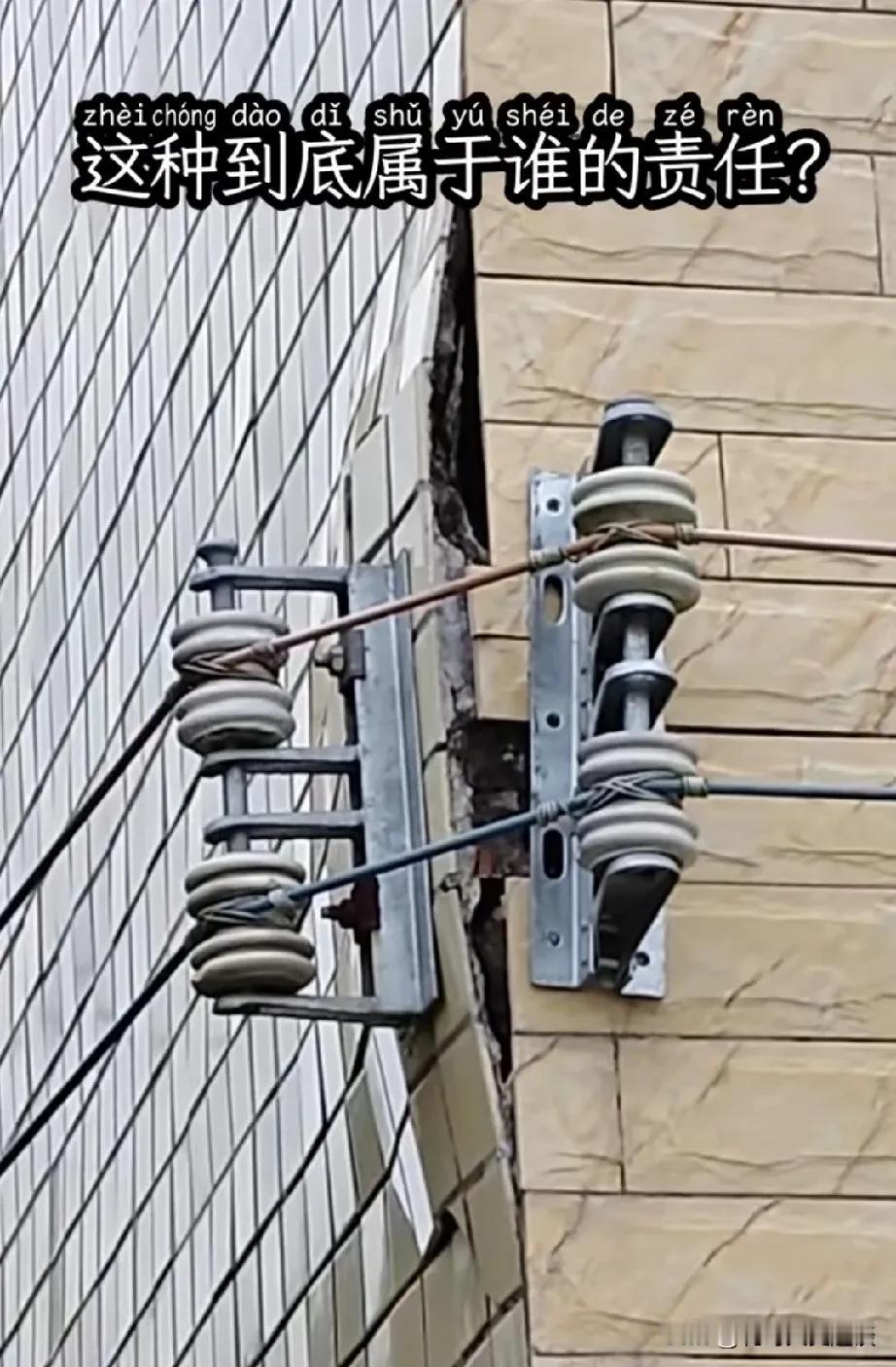 邻居家新房子给搞成这个样子把他气的直跺脚。邻居家去年刚盖的别墅,非常漂亮,外墙全部用瓷砖,他也是下了血本了。在他不知情的情况下村里通电扯线拐弯的时候用他家外墙作为支点架线,当他知道的时候已经架好了,想改道也来不及了。 让他想不到的是外墙瓷砖竟然和墙体脱离了,把他气的,找村里电工,说他们把他家的墙体给毁了。咋陪?电工说你这房子真不结实,人家看房子也没见开裂。你得找施工队负责。 施工方是他连桥,说竣工都是好的,他们不架线也不会出现这样的事,让他们赔钱。邻居也不知道主体责任方是谁了[捂脸][捂脸][捂脸]。
