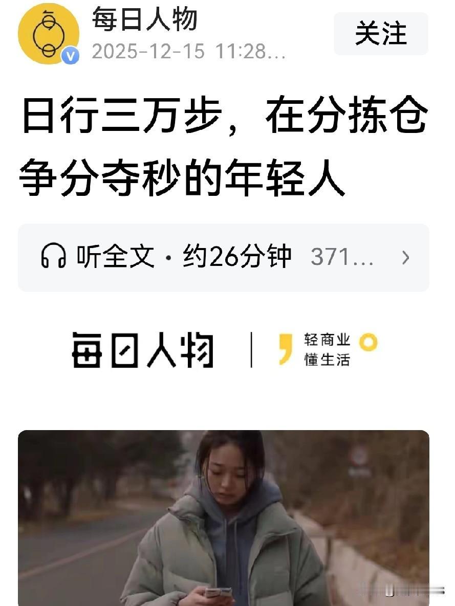 今天看了由王潇写的“日行三万步在分拣仓争分夺秒的年轻人”。年轻人的工作叫分拣员,第一次通过这篇文章,才这么近距离的知道了分拣员的工作和生活。 原来他们分拣员和外卖员、网约车司机是一样的,大家共同的撑起了城市里“随叫随到”的日常生活。外卖员和网约滴滴司机们是在大街小巷外面工作,而他们却要始终在封闭的仓库里工作,是我们大家很难接触的一环。这份工作上一次被互联网广泛讨论,说是因为能够“日行3万步,带薪减肥”。我认为通过这篇文章,“带薪减肥”这可真是一个贬义词。 分拣员他们需要长时间的持续站立,来回的搬运货物,在上班内几乎就没有长时间的休息机会。尤其是在电商大促、物流旺季的时候,订单量也会大量的激增,分拣的速度也要跟上流水线的运转,精神和身体都需要高度的紧张。 现在知道了仓库分拣员的工作真的是不容易,而且减温部分减温区的温度也会偏高或偏低,货物粉尘、噪音也会加重身体的疲惫感。 因为这份工作每到冬天,是分拣仓新人最多的时候。他们大多很年轻,背景也足各异,却面临着同一种处境,被更“正式”的工作拒之门外,就需要一处能快速容身、短期攒钱的地方。分拣仓这个工作没有门槛,也不会问过往,的成了他们共同的“庇护所”。 人人都不容易,所以要珍惜现有的工作。因为分拣员缺失强度,工作太大,它是一个体力与耐力并重的工作。