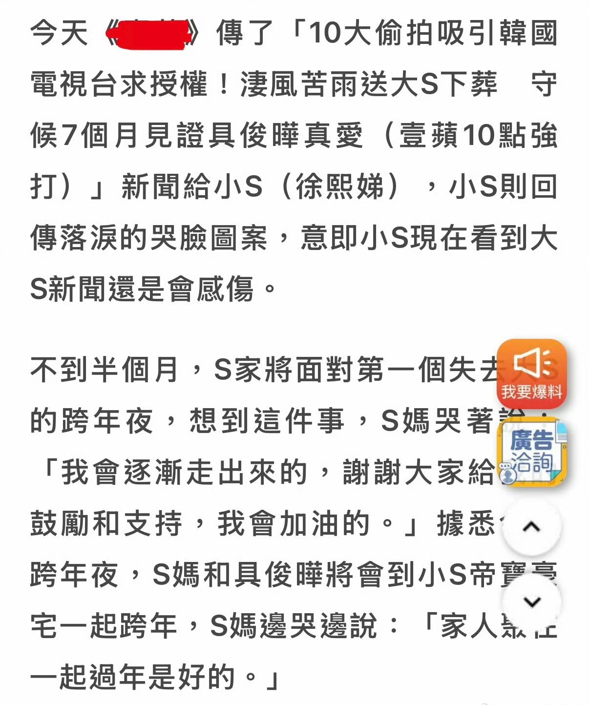 这也要搞个专访!S妈回应和具俊晔到小S家跨年